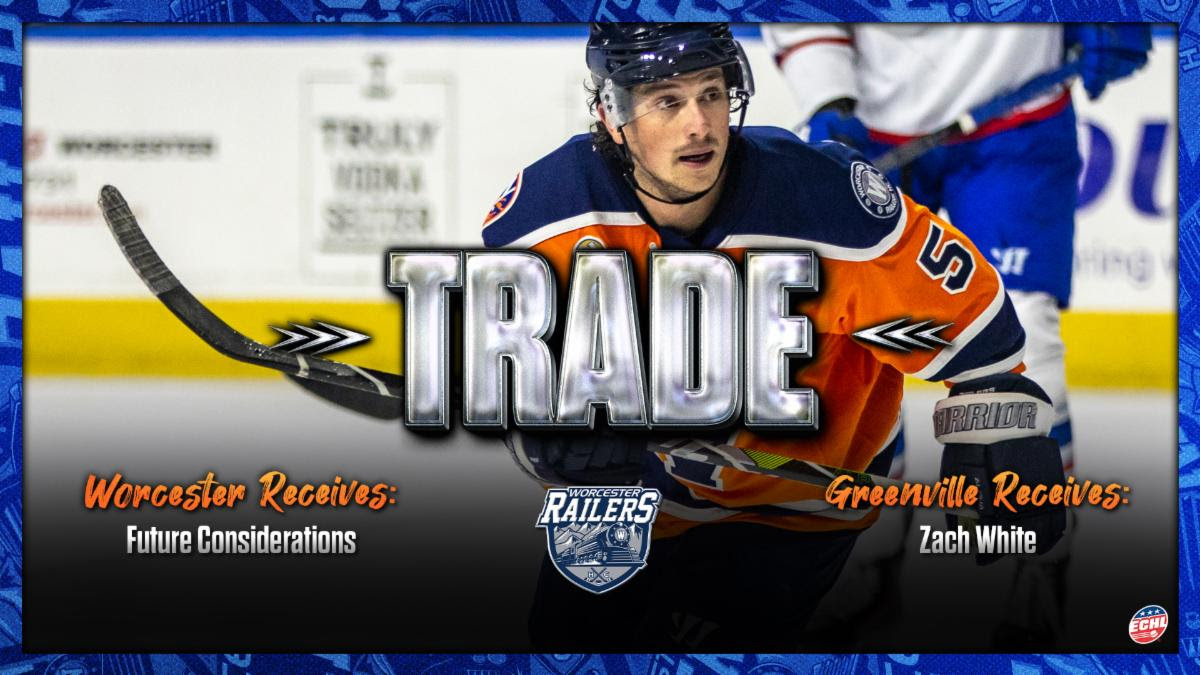 Worcester Railers general manager and associate head coach Nick Tuzzolino announced the club has traded forward Zach White to the Greenville Swamp Rabbits for future considerations.