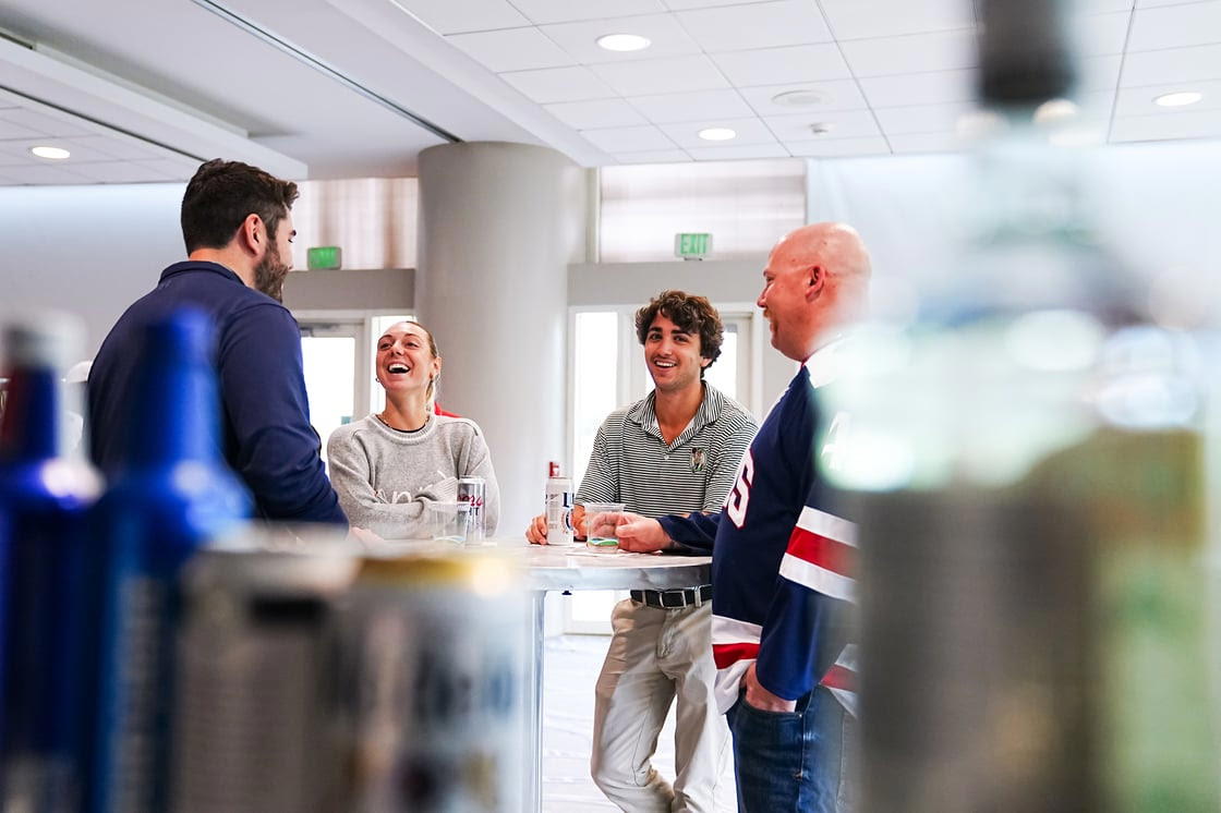 The lounge features a private setting with an 85" television, keeping fans close to every play through the end of the second intermission.