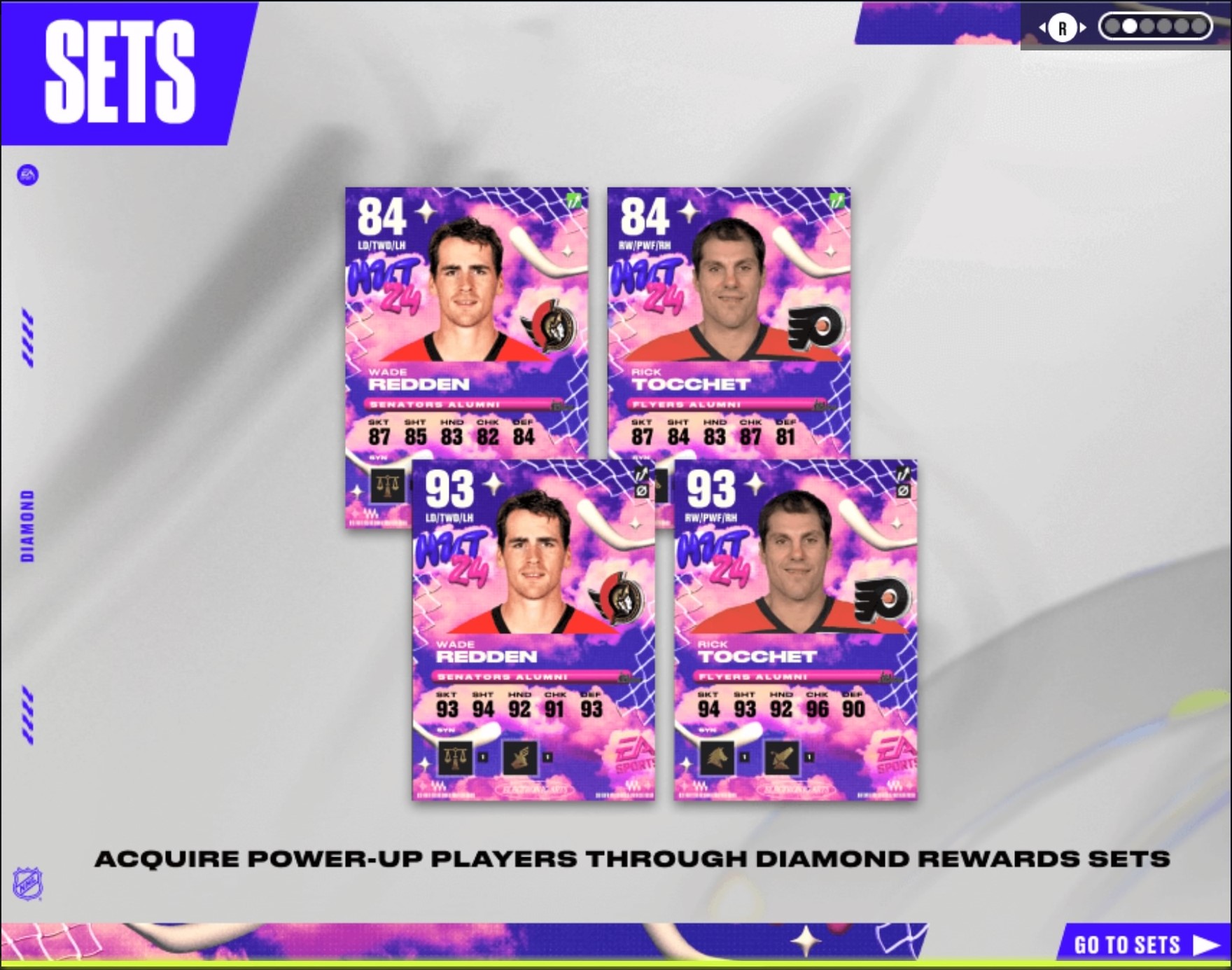 Two new Diamond Set players have been released in NHL 24 Hockey Ultimate Team, they are Ottawa Senators Wade Redden and Philadelphia Flyers Rick Tocchet.