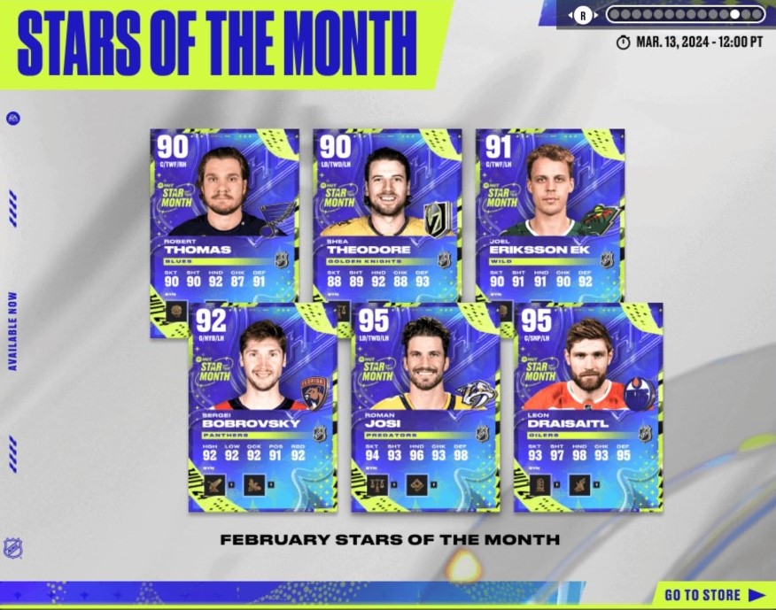The February Star of The Month cards have been released in NHL 24 Hockey Ultimate Team, with 20 players from professional and junior leagues all over the world.