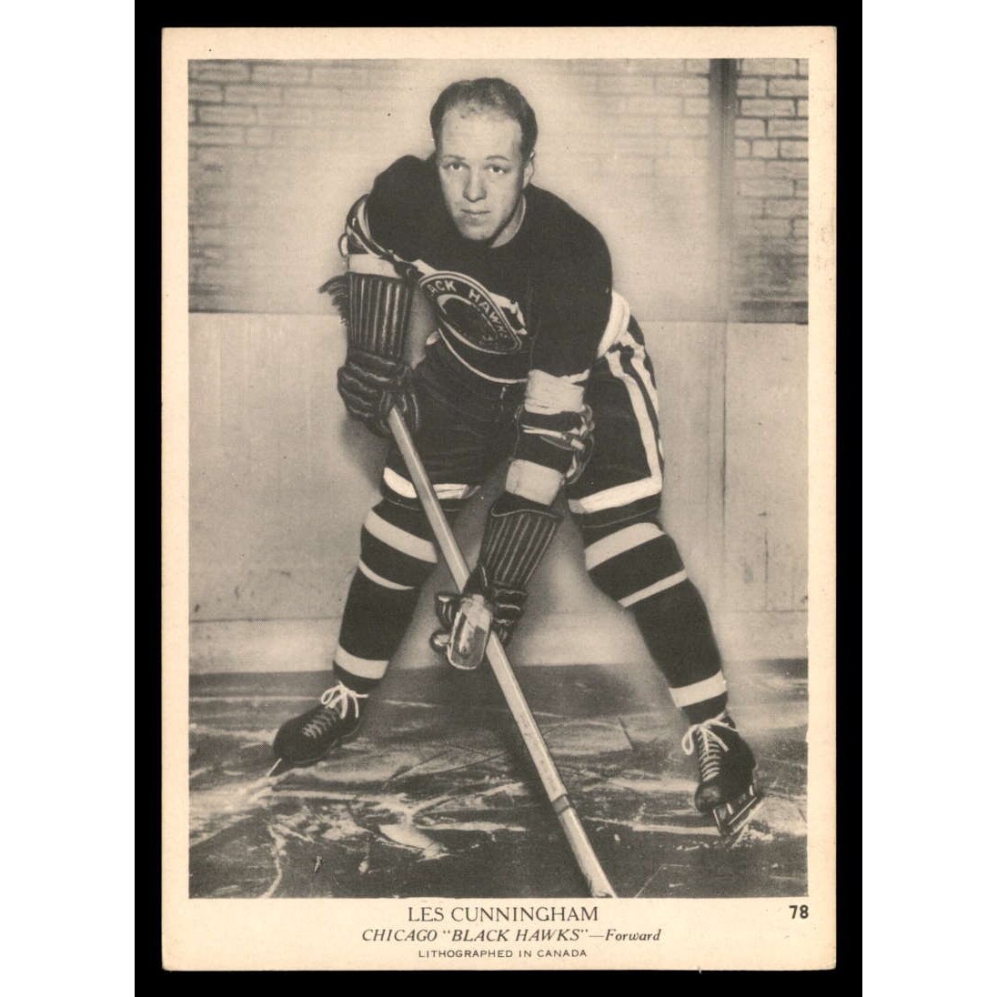 The Chicago Black Hawks brought Cunningham back to the NHL in 1939-40, his only full season in the big league. He dressed for 37 of the team's regular season games and one playoff contest, scoring six goals and 17 points. By far his greatest success came in games against the last-place Montreal Canadiens; on Jan. 28, 1940, he had two goals and three assists in the final frame of an 8-1 Chicago victory, tying an NHL record and becoming only the sixth player in league history to record five points in a period. A month later, he had a goal and four points in another lopsided win over the Habs. Unfortunately, the Black Hawks couldn't play all of their games against Montreal, and they sold Cunningham back to Cleveland at the the end of the season.