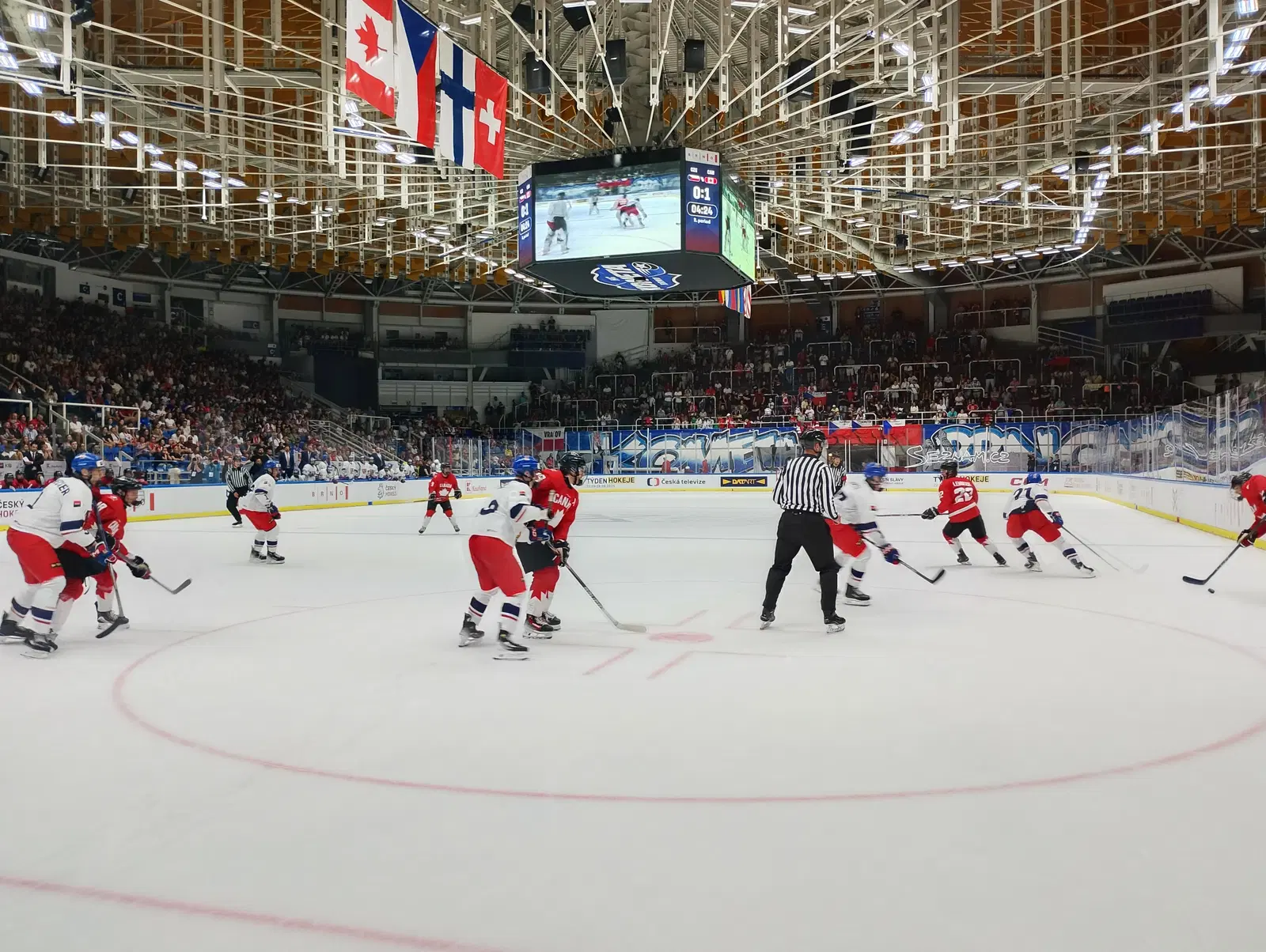 The Canadians were already in the semis and the Czechs needed a win, either in regulation or overtime, to join them. Before an energetic crowd of 3,609 – the largest crowd so far in Brno – they hung around for as long as they could, but eventually, the Canadians pulled away.