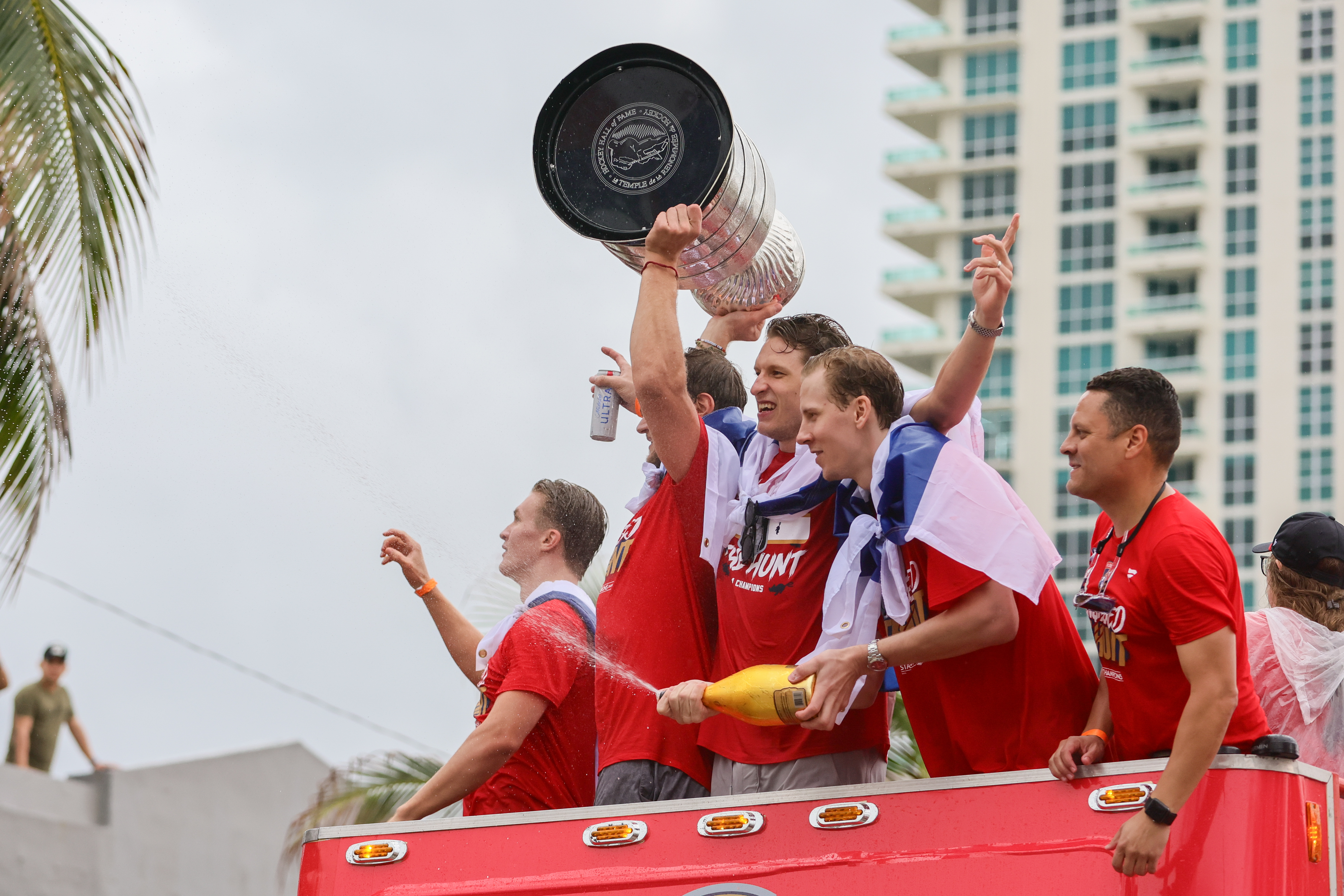“It’s been a busy day,” Barkov told FloridaHockeyNow on Wednesday afternoon. “I picked (the Stanley Cup) up this morning from the Helsinki airport – that’s like an hour and a half away – then went back home to my summer place, took some pictures with my family, ate some food from it, then went to an amusement park with it. There was a whole crowd of kids there waiting to see the Cup and get some pictures.”
