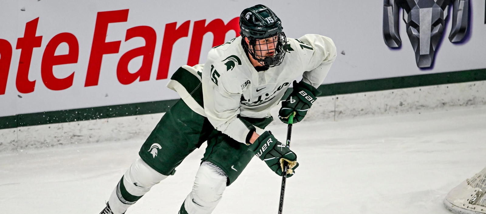 The old adage is that if you go hard to the net, good things happen, and Charlie Stramel is reaping the benefits that come from pursuing the blue paint. Entering his senior season at Michigan State, Stramel is averaging over a point per game for the first time in his collegiate career. This includes a team leading 11 assists in 14 games, helping feed his linemate Porter Martone and other players a steady stream of pucks. This comes through working hard in tight spaces while driving hard to the net. If Stramel continues to progress and put up points, he should easily make the jump to the American Hockey League when this NCAA season is over.