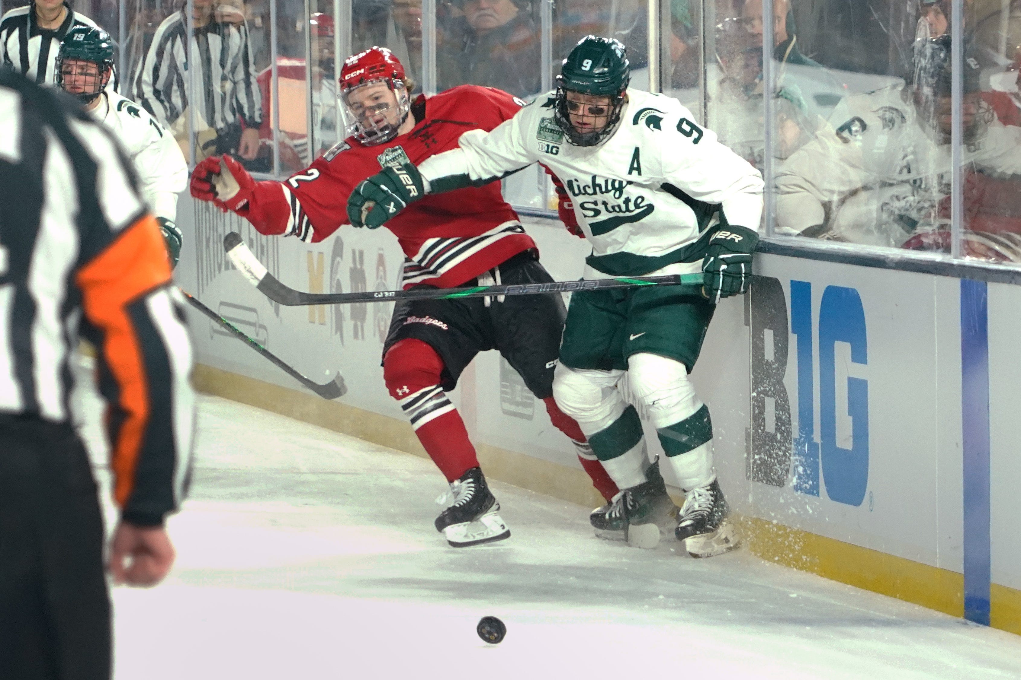 Michigan State's Luca Di Pasquo stopped 31 of 34 shots in the win, and Wisconsin's Tommy Scarfone made 34 saves in the loss.