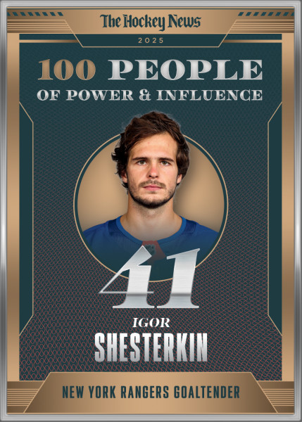 New York Rangers goaltender Igor Shesterkin is No. 41 on the Top 100 People of Power & Influence in hockey.