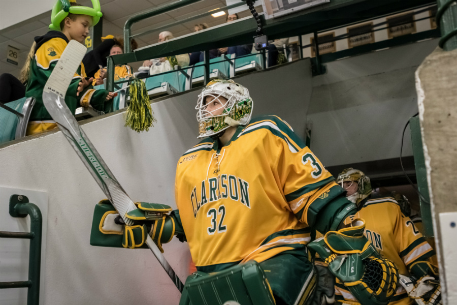 It wasn’t long, however, before the perfect opportunity presented itself. Following the graduation of Shea Tiley, the back-to-back defending national champion Clarkson Golden Knights were seeking a starting goaltender. Sauve more than fit the bill, and her visit to the campus sold her on Clarkson, athletically and academically. That the Golden Knights had done their research on Sauve, too, didn’t hurt.