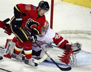 Jimmy Howard kept it 1-0 stopping Nicklas Hagman and on Calgary's final chance to tie the shootout, Rene Bourque missed the net.