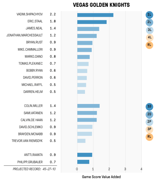I don’t see any hockey people around, so here’s the nerd side of things. According to just the numbers*, this is the best cap-compliant team Vegas can make along with their Game Score from last season.