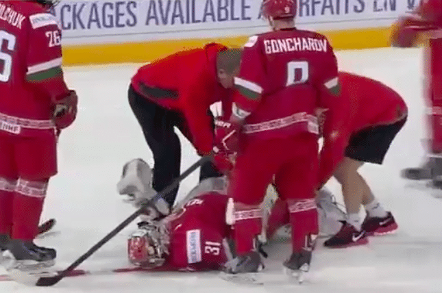 Kulbakov had to be helped off the ice after what had been an outstanding game for the 19-year-old netminder. He made 35 saves and was named Belarus’ player of the game for the second straight game. There are no reports on the severity of his injury, but it didn’t look good and seems unlikely he’ll be starting in goal Tuesday when Belarus plays Russia.