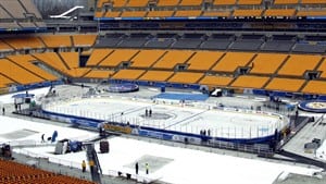 One thing that doesn't seem to be causing concern is the temporary ice surface that has been laid down at the football field over the last week. A million-dollar refrigeration system allows ice guru Dan Craig to keep the surface at NHL quality even if the temperatures are a bit warm—which they're expected to be Saturday with some weather services projecting the thermometer to hit 10 C.