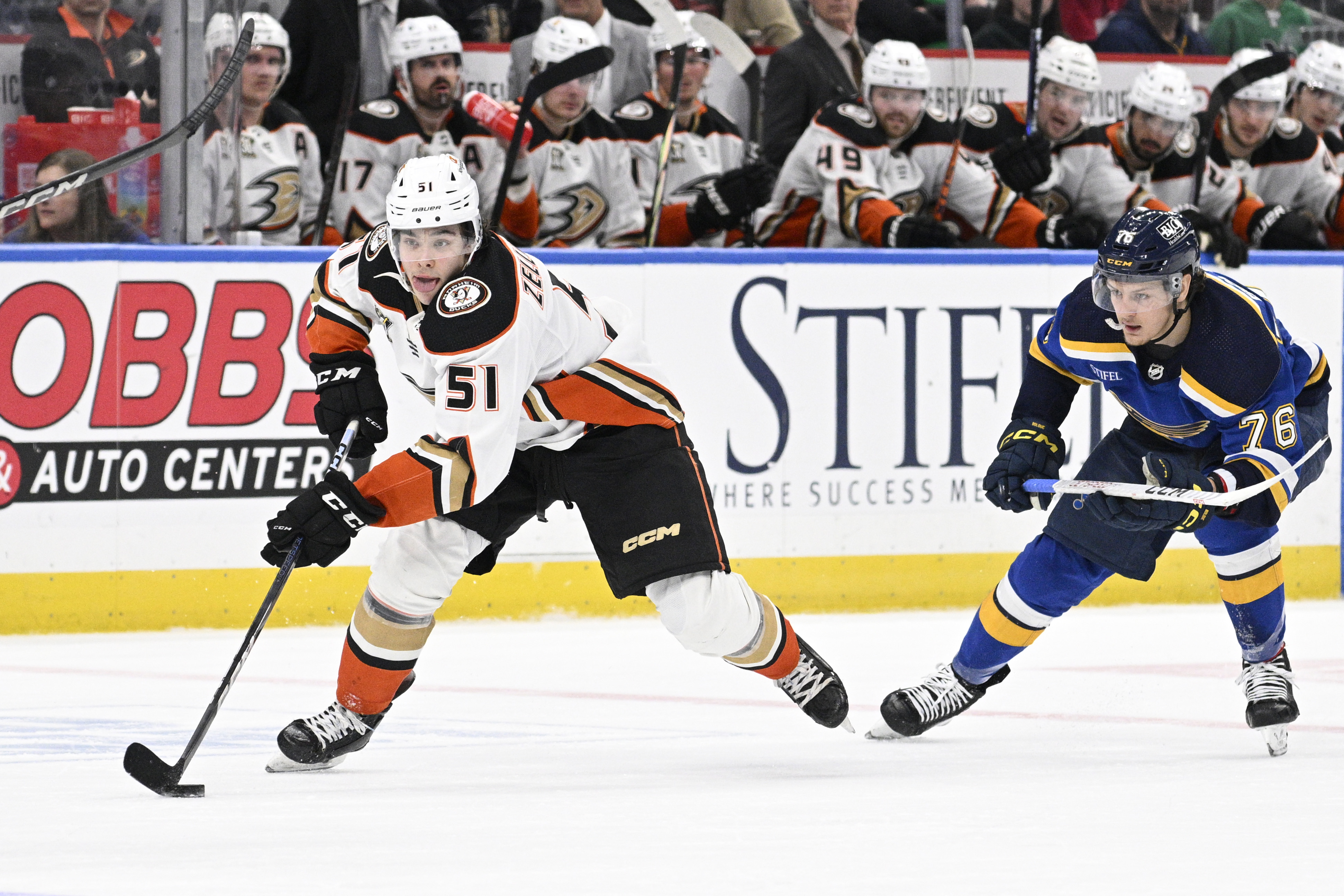 The Ducks host the Blues for a Sunday night affair, the final season matchup between the two teams. The Ducks are coming off a 3-1 loss to the Seattle Kraken on Friday at home while the Blues lost 3-2 in overtime to the San Jose Sharks in San Jose on Saturday.