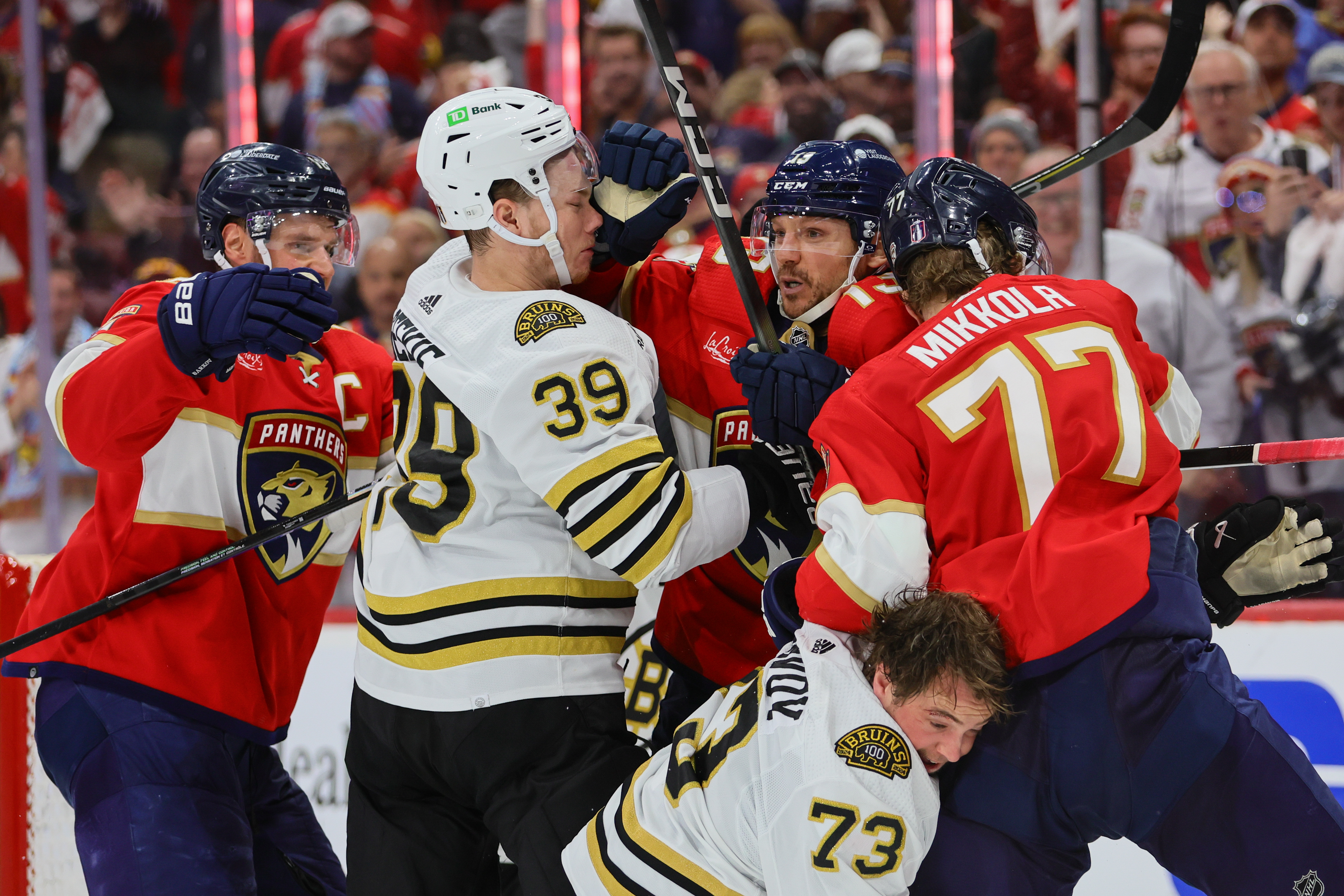 The Boston Bruins lost 6-1 to the Florida Panthers Wednesday night at Amerant Bank Arena, tying the second-round series 1-1.