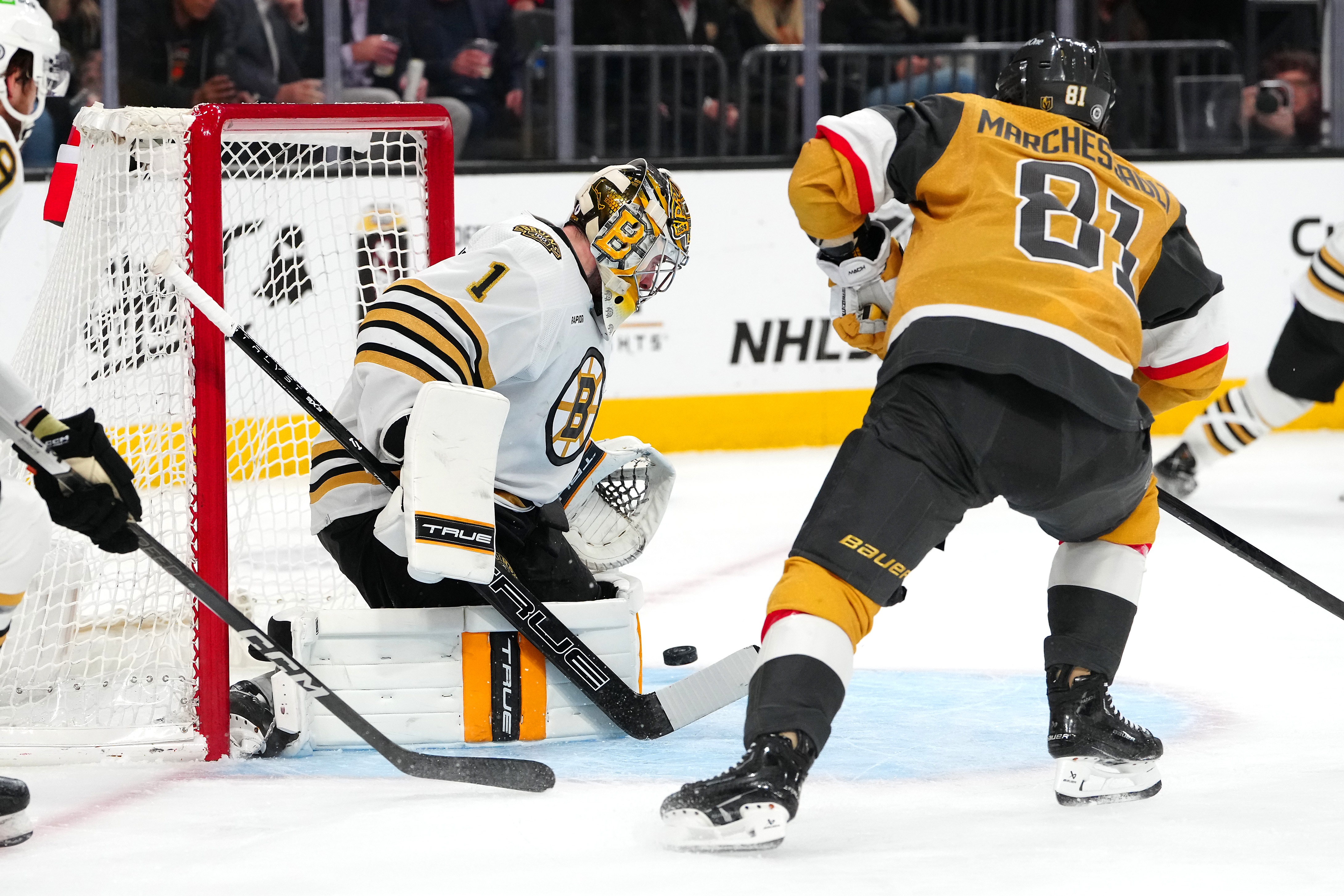 Vegas almost took the lead again after Grzelcyk tied it, but Swayman stopped Ivan Barbashev with the side of his pad at 15:41. Barbashev managed to rebound it to the low slot, but Mason Lohrei and Hampus Lindholm got between Eichel and what would have been a wide open net to allow Swayman enough time to dive on the puck at 15:45.