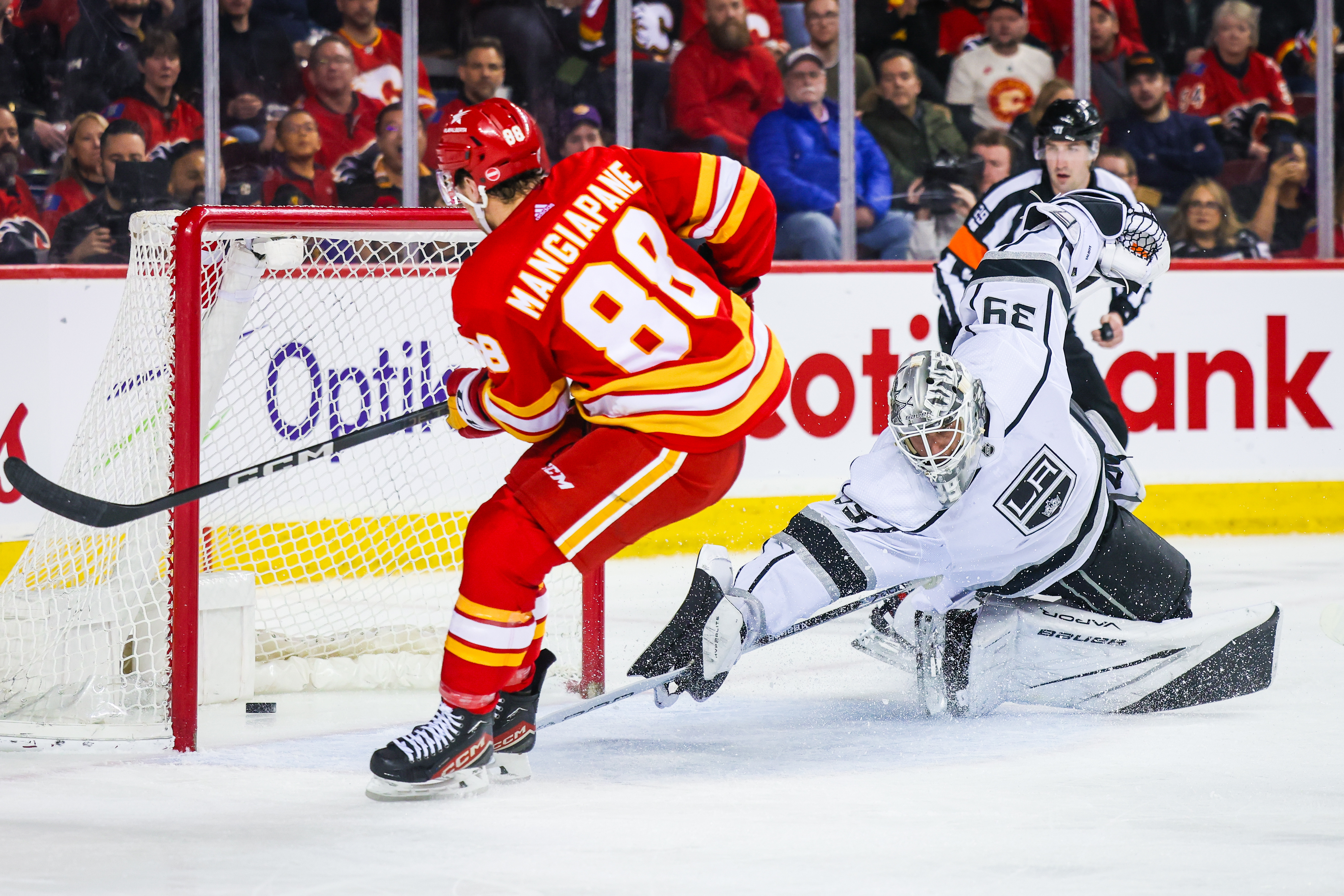Despite being the better team from the drop of the puck, the Flames fell behind 1-0 past the midway point. On the next shift, Mangiapane was sprung on a breakaway and netted his 12th goal of the season.