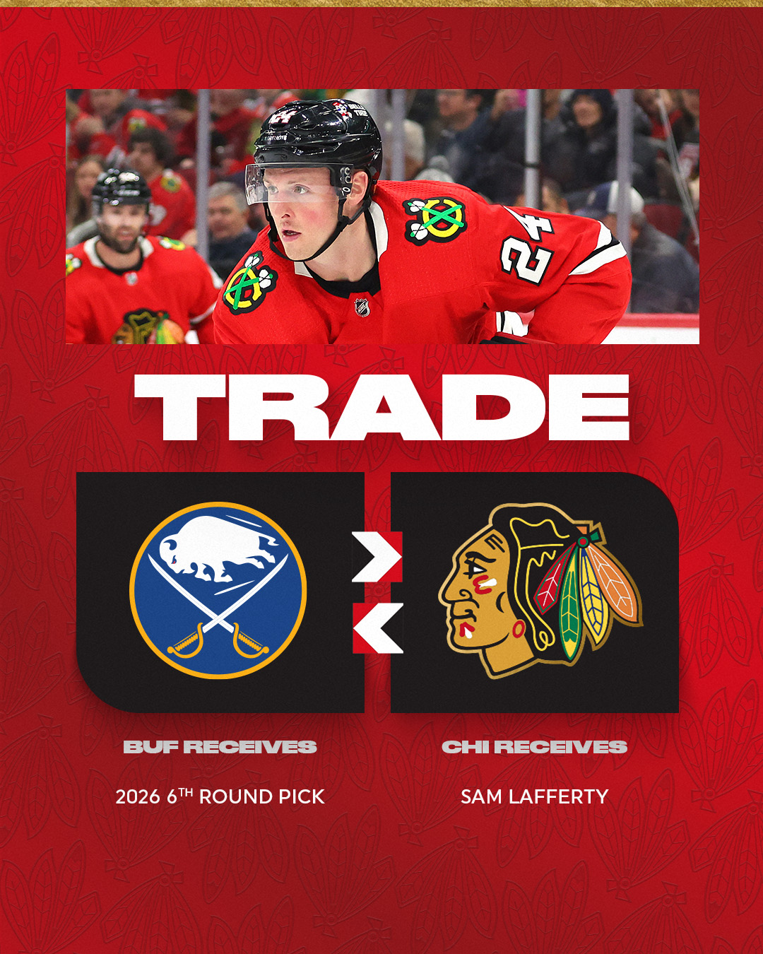 This time, it is a deal with the Buffalo Sabres that sends a 6th-round pick in 2026 in exchange for Lafferty, who has also had stops with the Vancouver Canucks and Pittsburgh Penguins throughout his career.