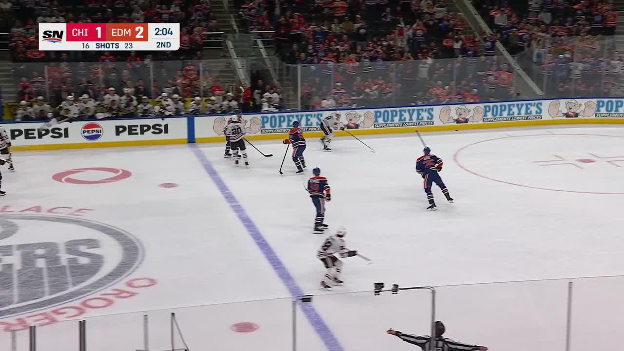 The Blackhawks responded on the power play about 8 minutes later, as Tyler Bertuzzi tipped in a Connor Bedard shot pass. That wouldn't be the end of the power play goals in this period, however, as Jack Roslovic scored a tip-in goal of his own to give the Oilers the lead back.