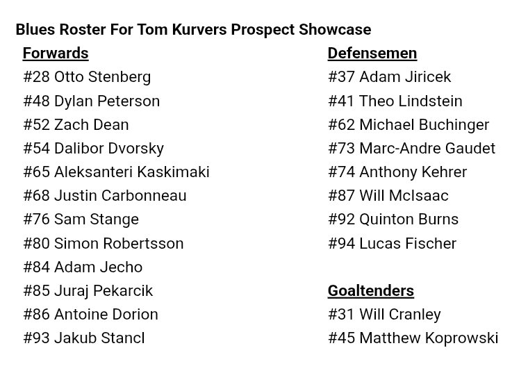 The Chicago Blackhawks, St. Louis Blues, and Minnesota Wild will all participate in the Tom Kurvers Prospect Showcase.