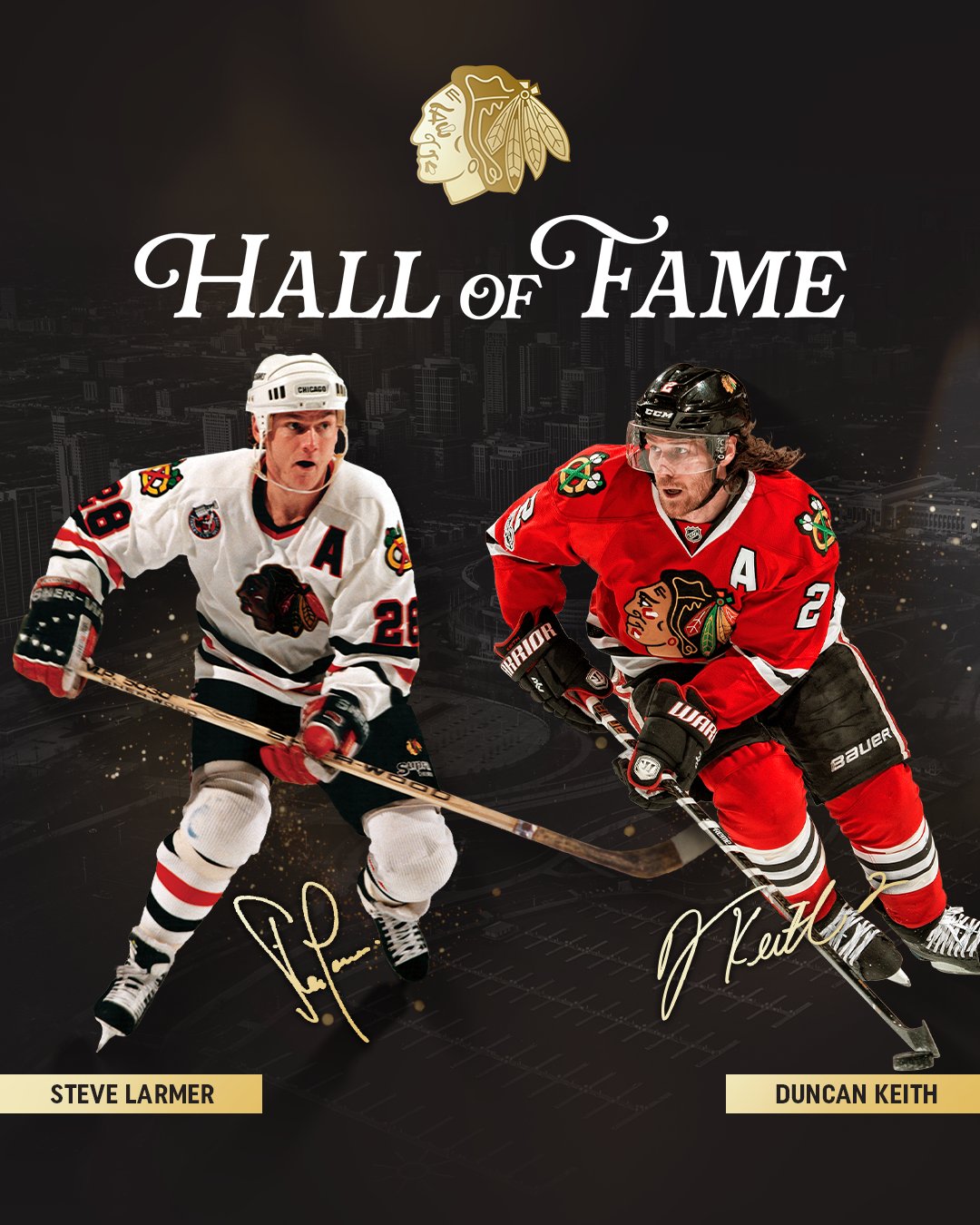 “We are beyond proud to announce the inaugural Blackhawks Hall of Fame class will include Steve Larmer and Duncan Keith,” Blackhawks Chairman and CEO Danny Wirtz said. “The incredible participation we saw from Blackhawks fans, Alumni, and media is a testament to the lasting influence that each of these individuals have had on our storied franchise.”
