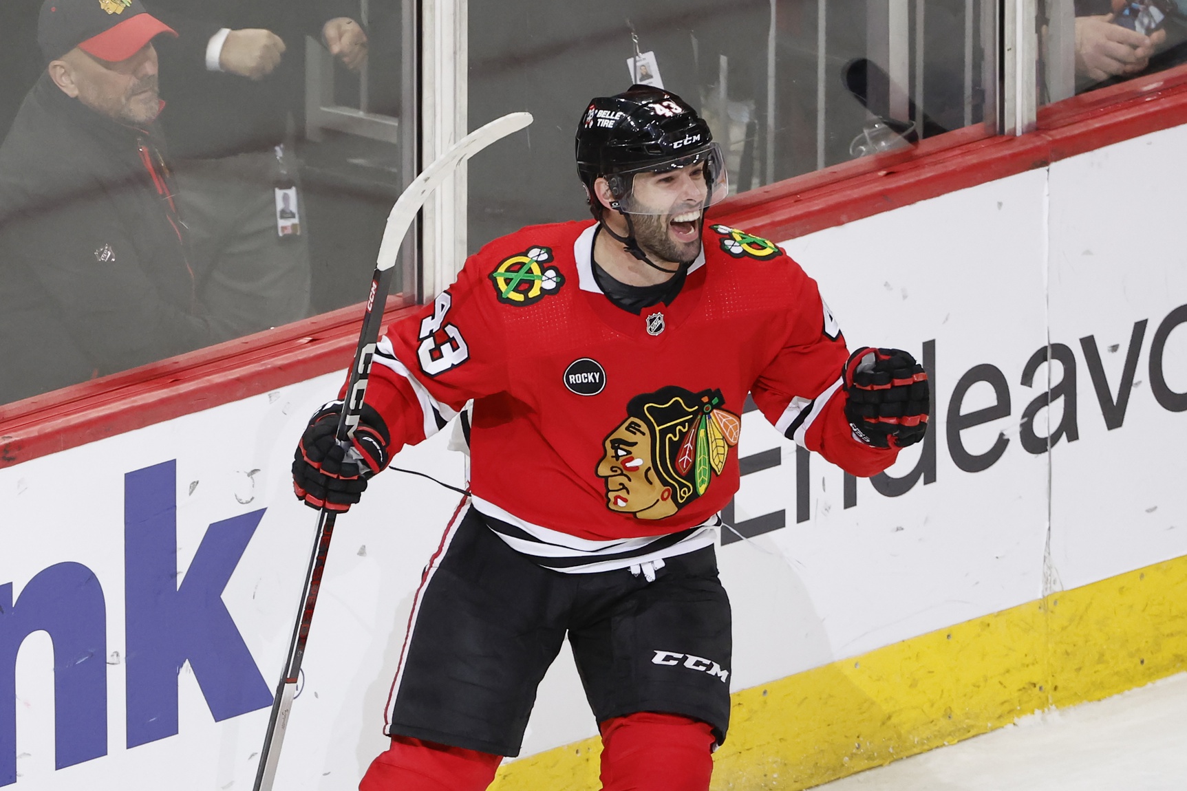 Blackwell's hat trick came two days after the NHL's trade deadline. He was glad to still be a Blackhawk.