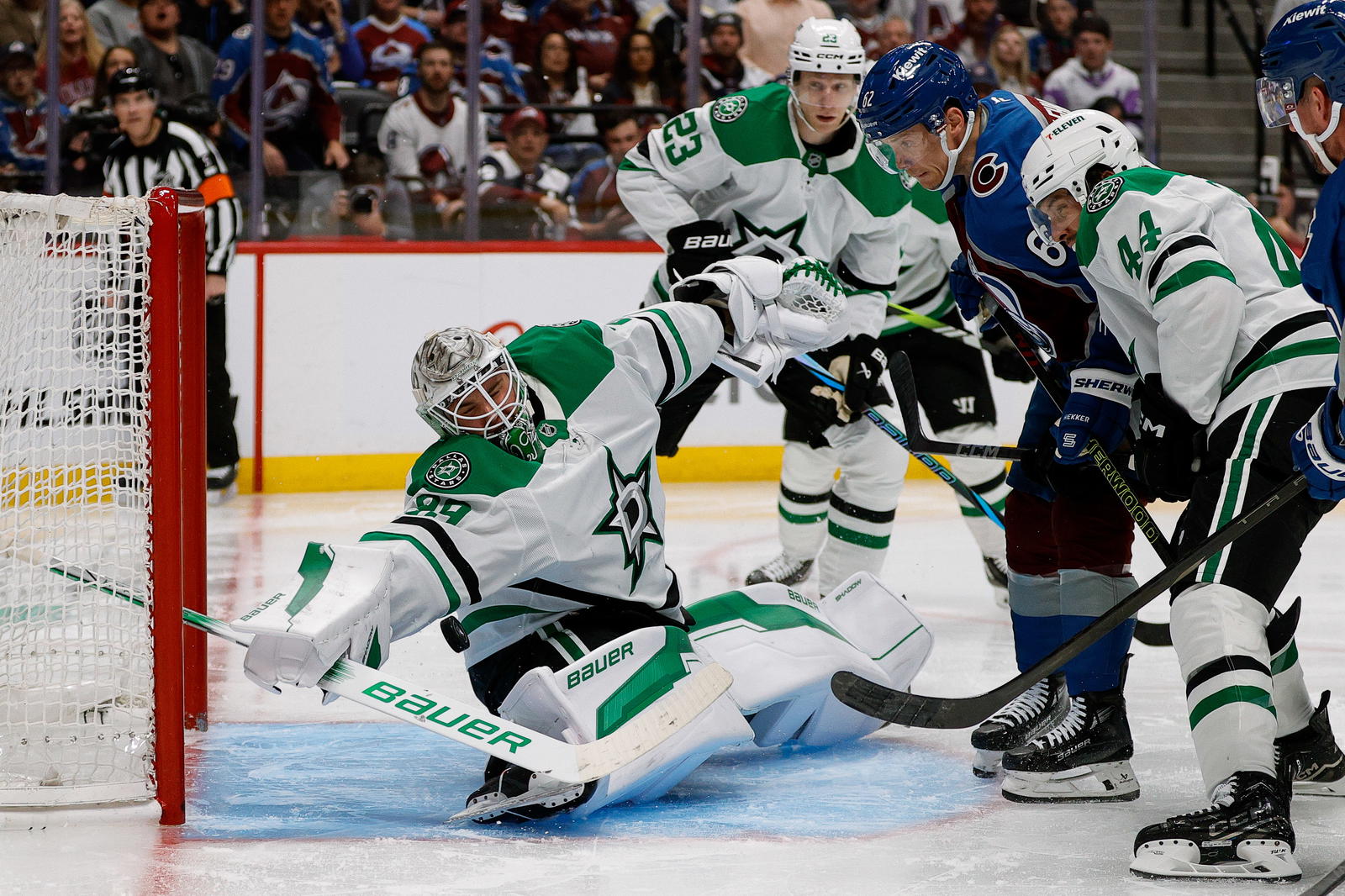 In fact, the first period was largely carried by the Stars, outshooting Colorado 16-5 but trailing 1-0 after allowing a 4-on-4 goal by Valeri Nichushkin. Nichushkin was the beneficiary of a legal-illegal pick play set by an Avalanche player in the middle of the ice, rubbing off Nichushkin's marker and leaving him all alone to deke and beat Jake Oettinger to give the Avs the lead.