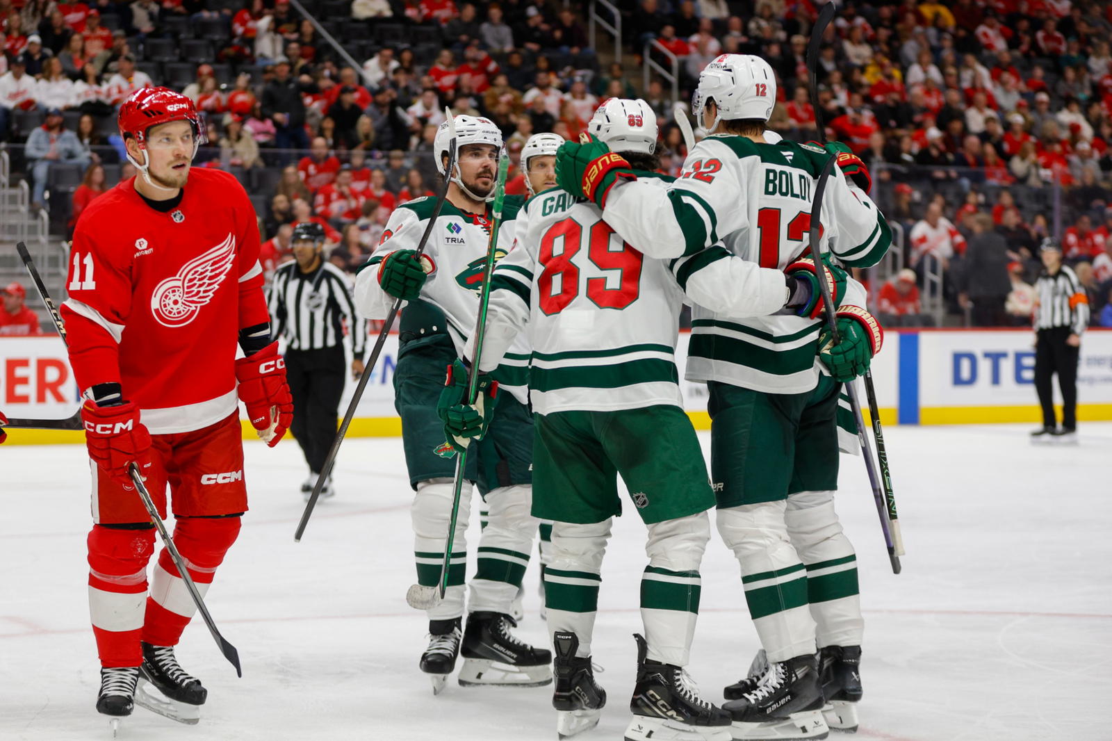 However, a pervasiveness sloppiness prevented that two-goal lead from ending the game, and Minnesota forced its way to the right side of the choppy affair late. First, Matt Boldy scored with 6:53 during a four-on-four sequence that became five-on-four thanks to a delayed penalty against Vladimir Tarasenko. Then, Marcus Foligno tied the score with 1:31 to play and the Wild net again empty. And, for the coup de grace in overtime, Wild forward Marco Rossi stepped out of the penalty box and straight into a breakaway, where he appeared to fan on his shot attempt only for the puck to slip past Red Wings goaltender Cam Talbot anyway for the winning goal.