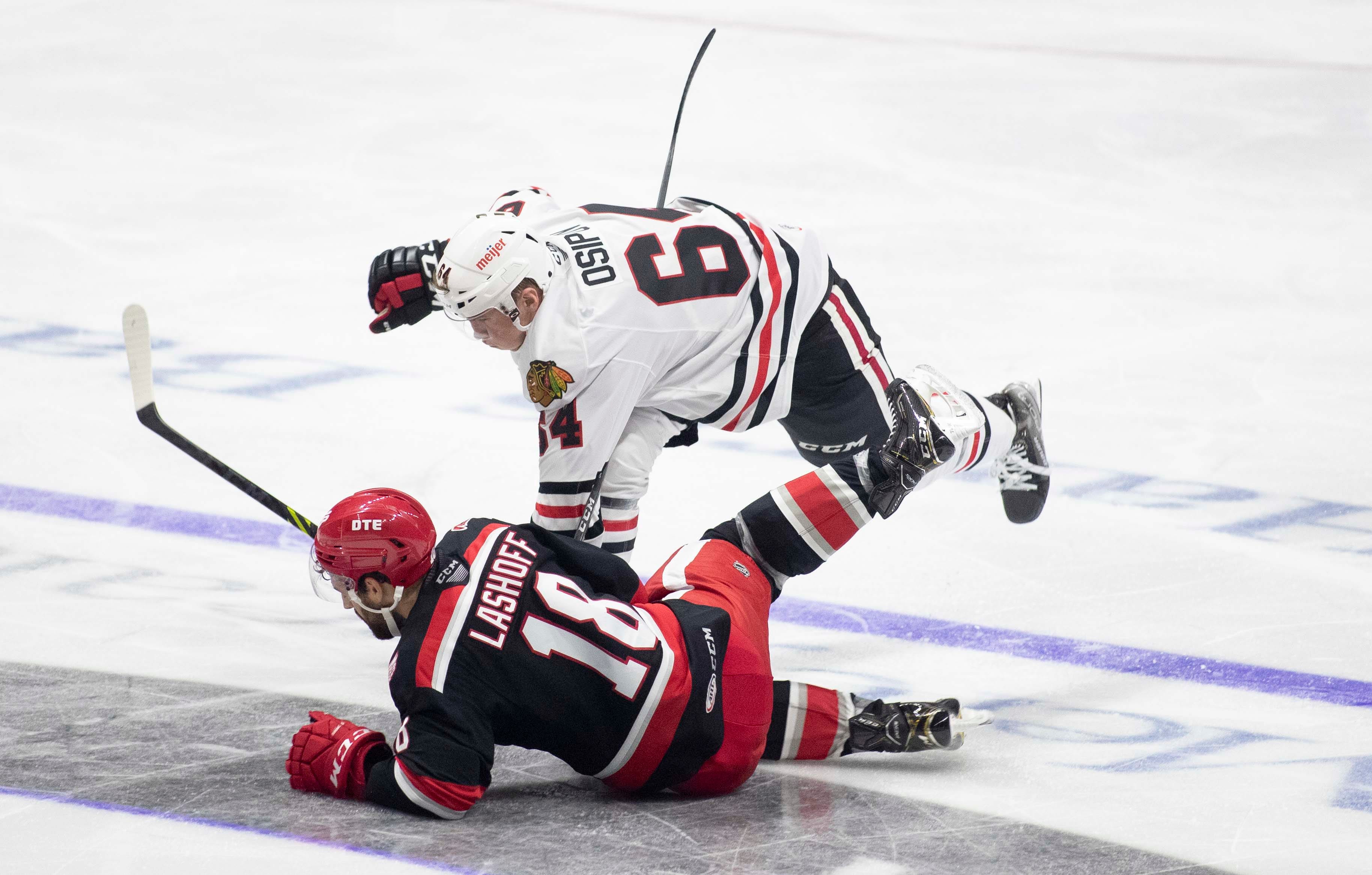In overtime, Rockford's Ethan Del Mastro found the winner 3:46 into the extra session. Sebastian Cossa made 21 saves on 26 shots in the losing effort.