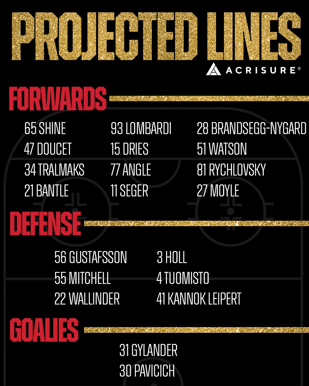 Grand Rapids will look to test Woll early and often, but they have goaltending concerns of their own. With both of their regular netminders injured in the last game, the Griffins will turn to ECHL call-ups Carter Gylander and newly signed Luke Pavicich to handle duties in goal.