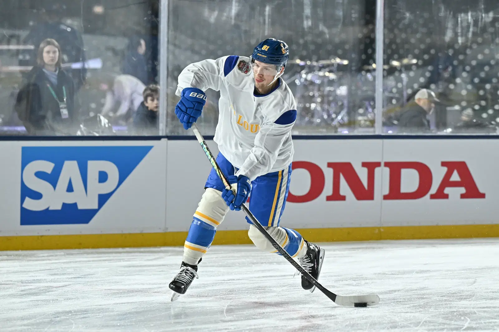Holloway enjoyed the best year of his career with the Blues. He recorded 63 points in 77 games while averaging 16:49 per game.