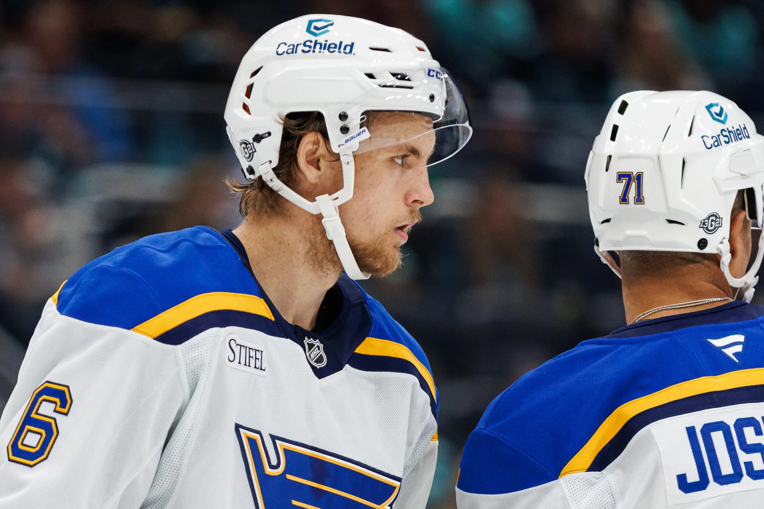 The pair both got onto the scoresheet in Tuesday's opener against Seattle. Broberg scored the second goal of a 2-0 Blues comeback that featured three goals in just under two minutes, while Holloway provided a secondary assist on the goal.