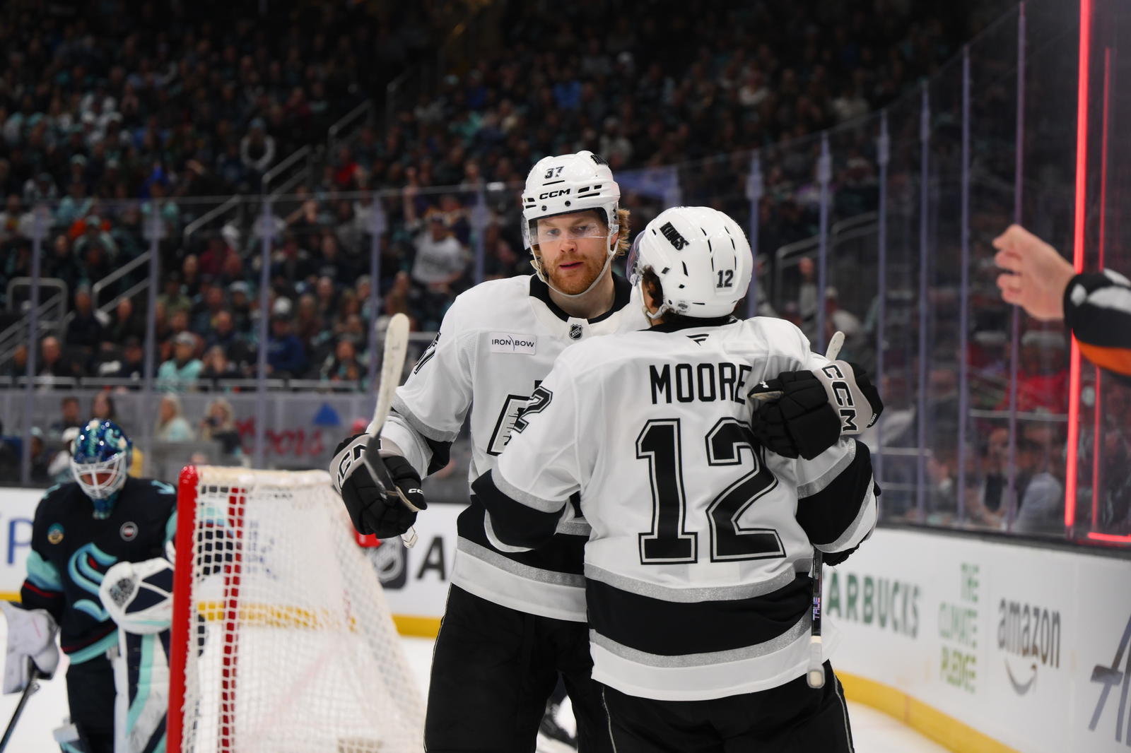 According to PuckPedia, Moore is listed on the 3rd line right wing, playing alongside him are Phillip Danault and Warren Foegele, both consistent players who are good defensively and provide the Kings with good depth scoring. With Moore on the 3rd line, his defensive game can be paired alongside some of the Kings' best defensive forwards. Moores' defensive skills open up his game as his two-way play and quick transitioning capabilities allow him to contribute depth scoring and allow his team to build off of his high energy. It is also listed on PuckPedia that Moore is on the second line power play, where he registered 3 points on it last season. Moore is also on the second penalty kill line alongside Foegele. So, the entire third line for the Kings is on both penalty kills, showing that Moore, Danault, and Foegele are a great defensive line.