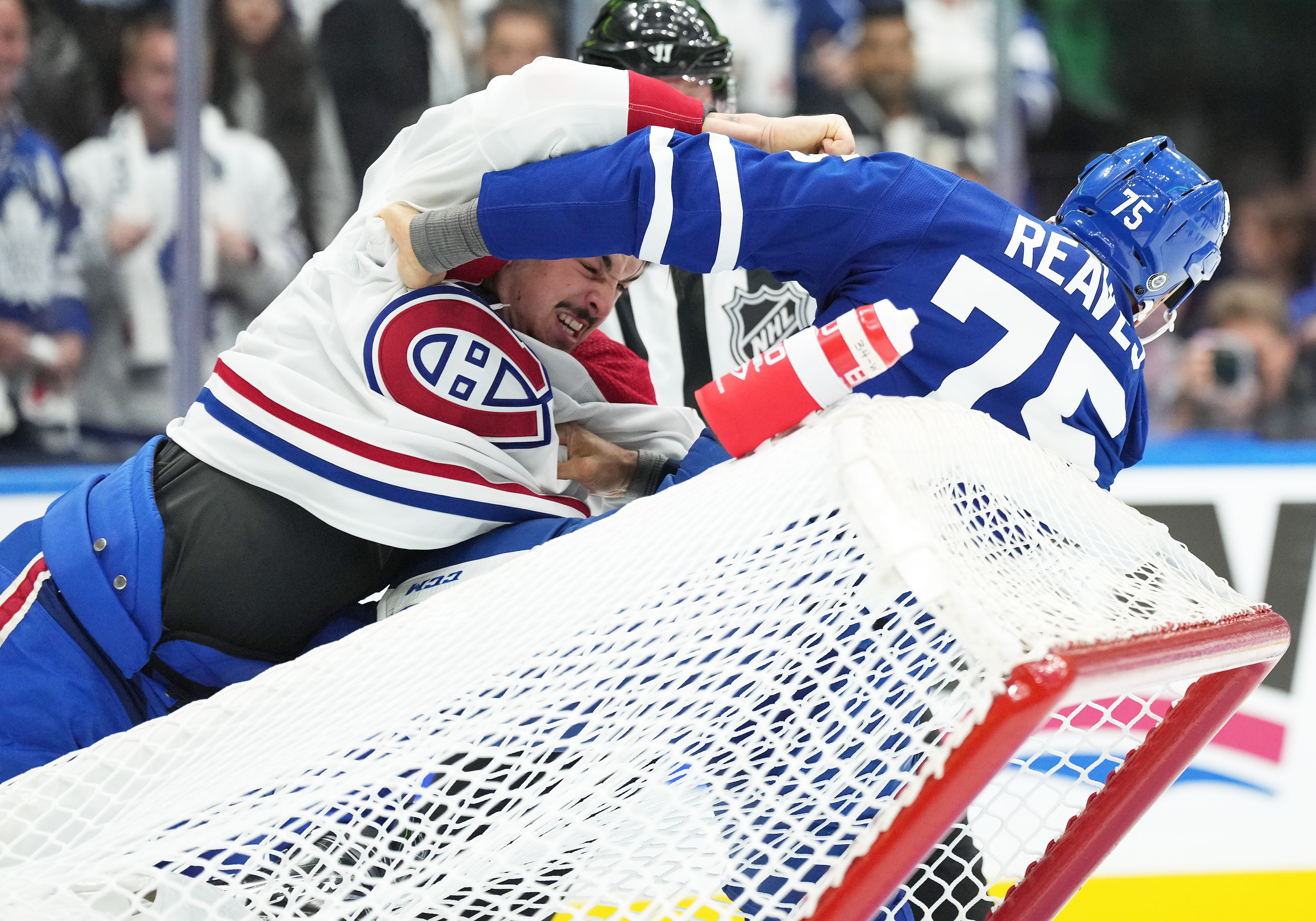 After Ryan Reaves dished out big hits on Ylonen and Kaiden Guhle, Arber Xhekaj sent a message. Xhekaj manhandled Reaves earning himself an instigator penalty, a five minute major and a 10 minute misconduct. Xhekaj also contributed to the offense, assisting on Newhook's second goal.