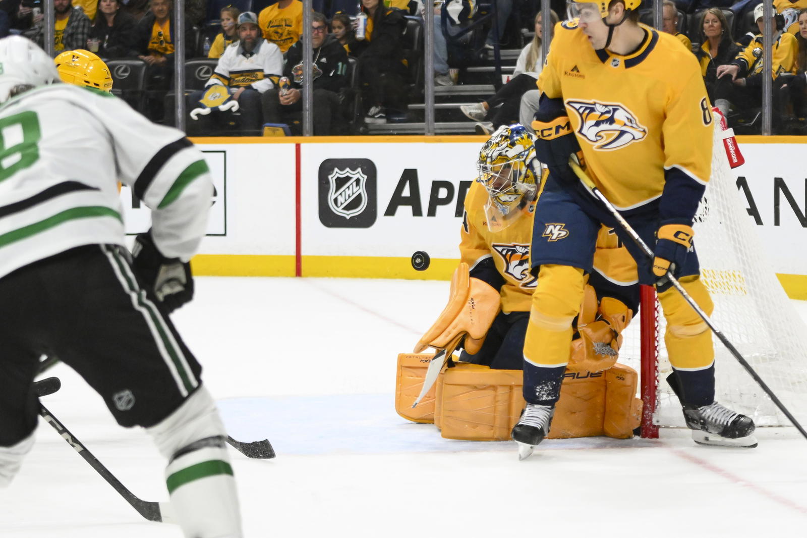 The Preds got behind after Dallas scored all four of their goals in the second period. A valiant comeback effort fell short and started the team on a five-game losing streak to begin the season.