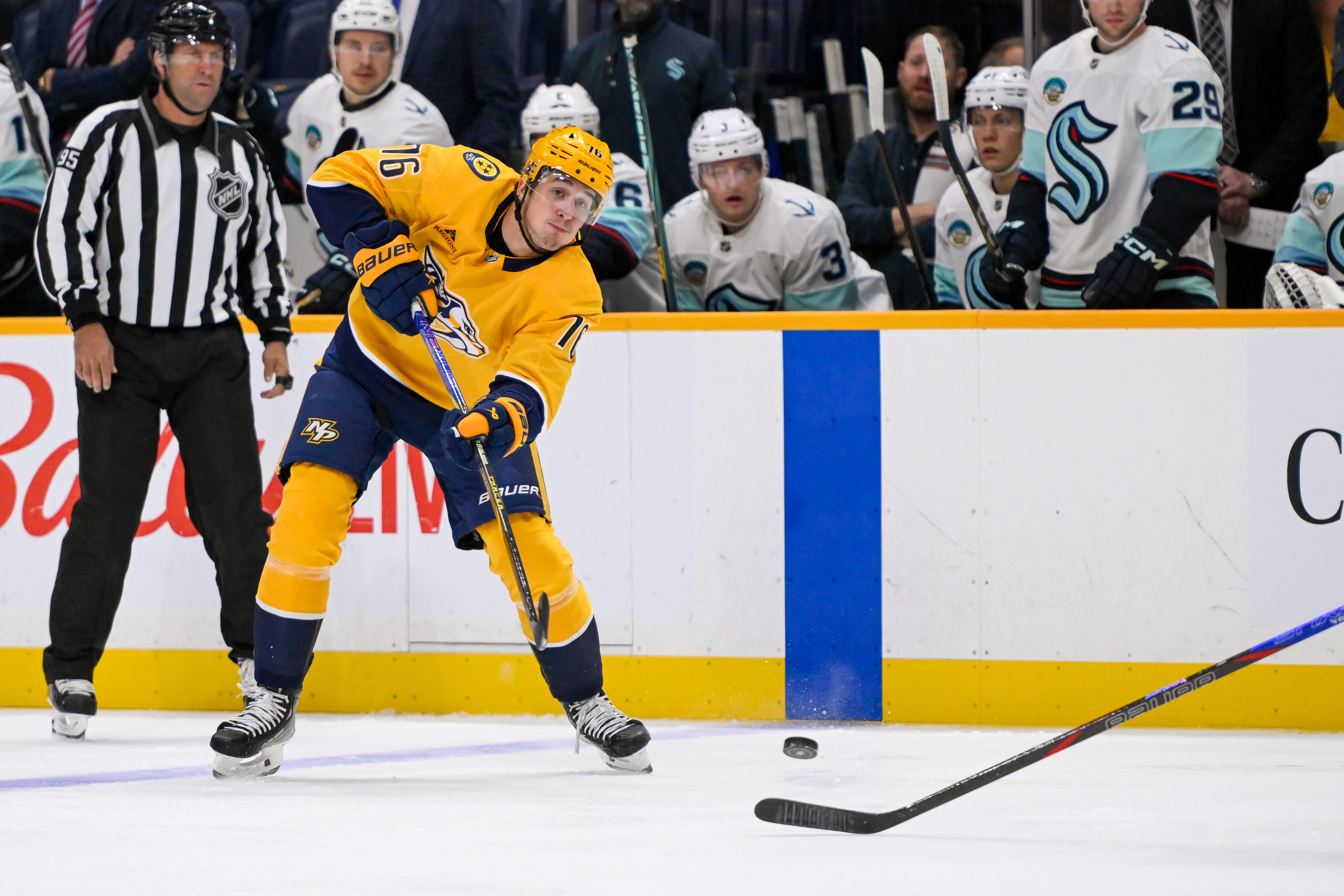 The Predators fell behind 2-0 early as the Kraken kicked things off with Ryker Evans beating a screened Juuse Saros for a goal at 3:37 and Oliver Bjorkstrand cashing in on an odd man rush at 7:07.