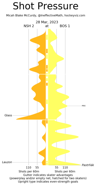Nashville's top four players in shots on goal this season? Three missed last night's game due to injury (Roman Josi, Filip Forsberg, and Matt Duchene) while the fourth is no longer with the franchise (Nino Niederreiter). Yet in the first and second periods of the game, the Predators were able to match the Bruins nearly shot for shot.