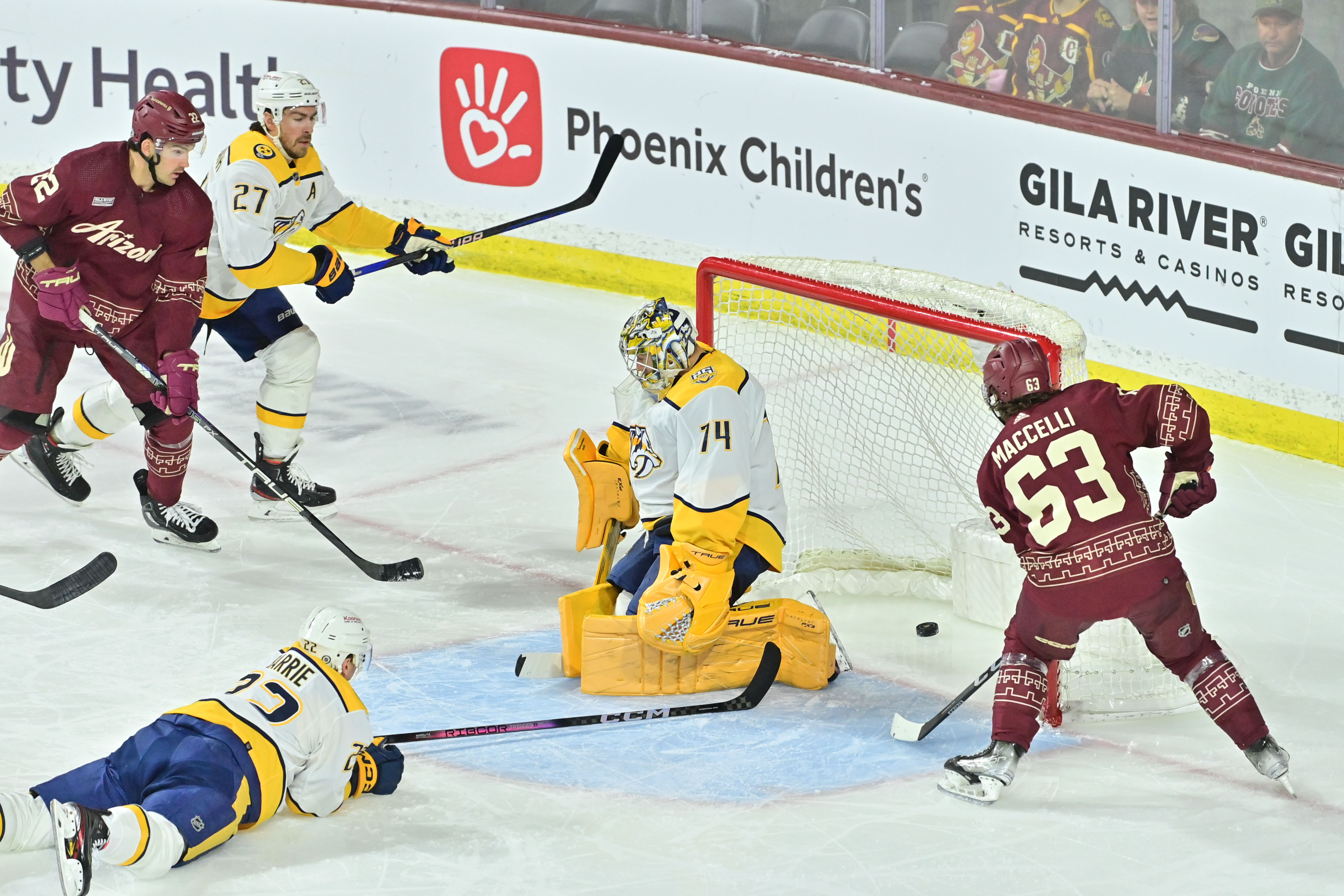 Jason Zucker scored twice in the first six minutes of the game and Roman Josi put up another three-point effort, but the Predators ultimately saw their franchise-record 18-game point streak (16-0-2) come to an end with an 8-4 road loss to the Arizona Coyotes on March 28.