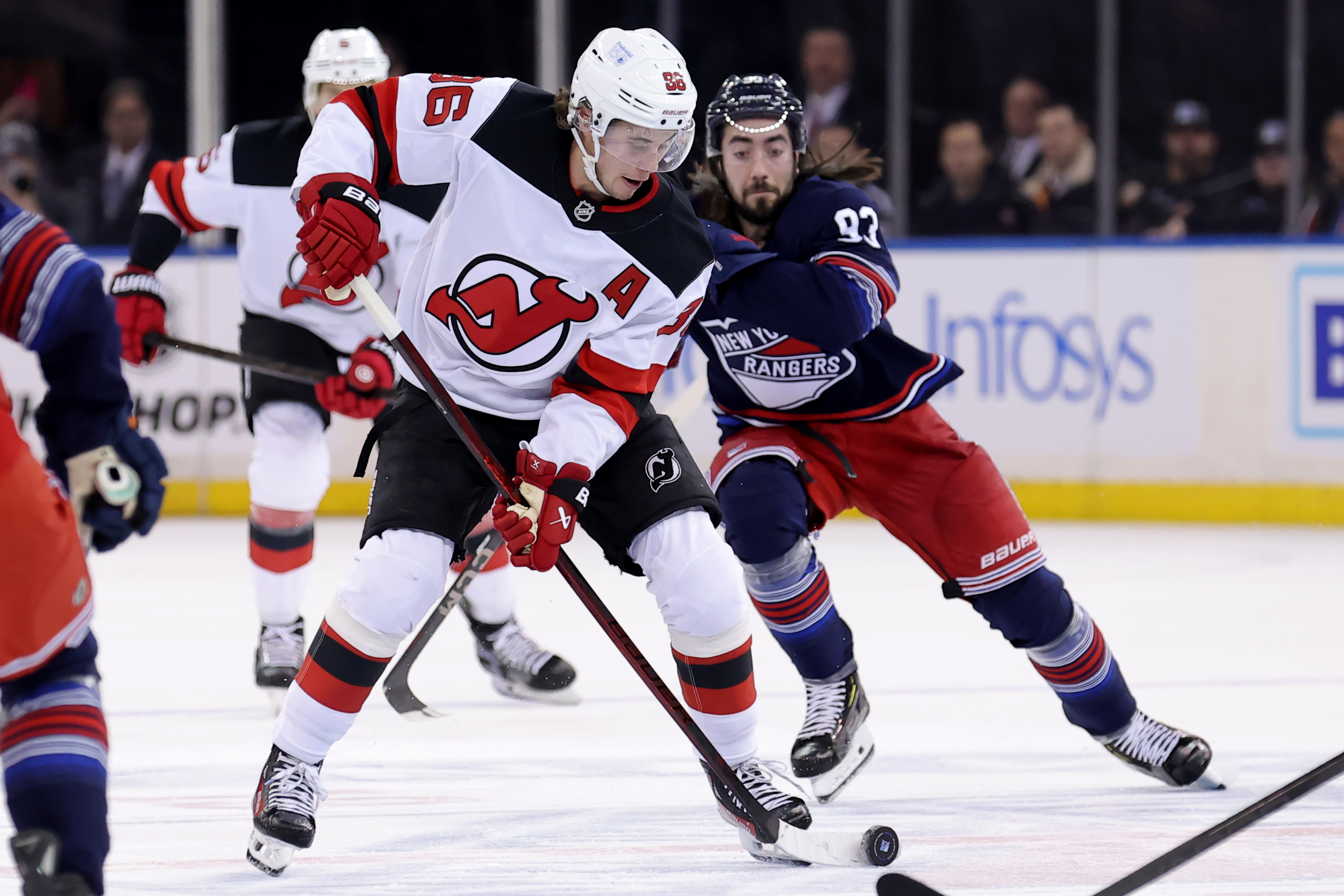 Less than five minutes later, he earned the primary assist on Jesper Bratt's goal, which was, at that time, the go-ahead goal. It was his third consecutive multi-point performance against the Rangers.
