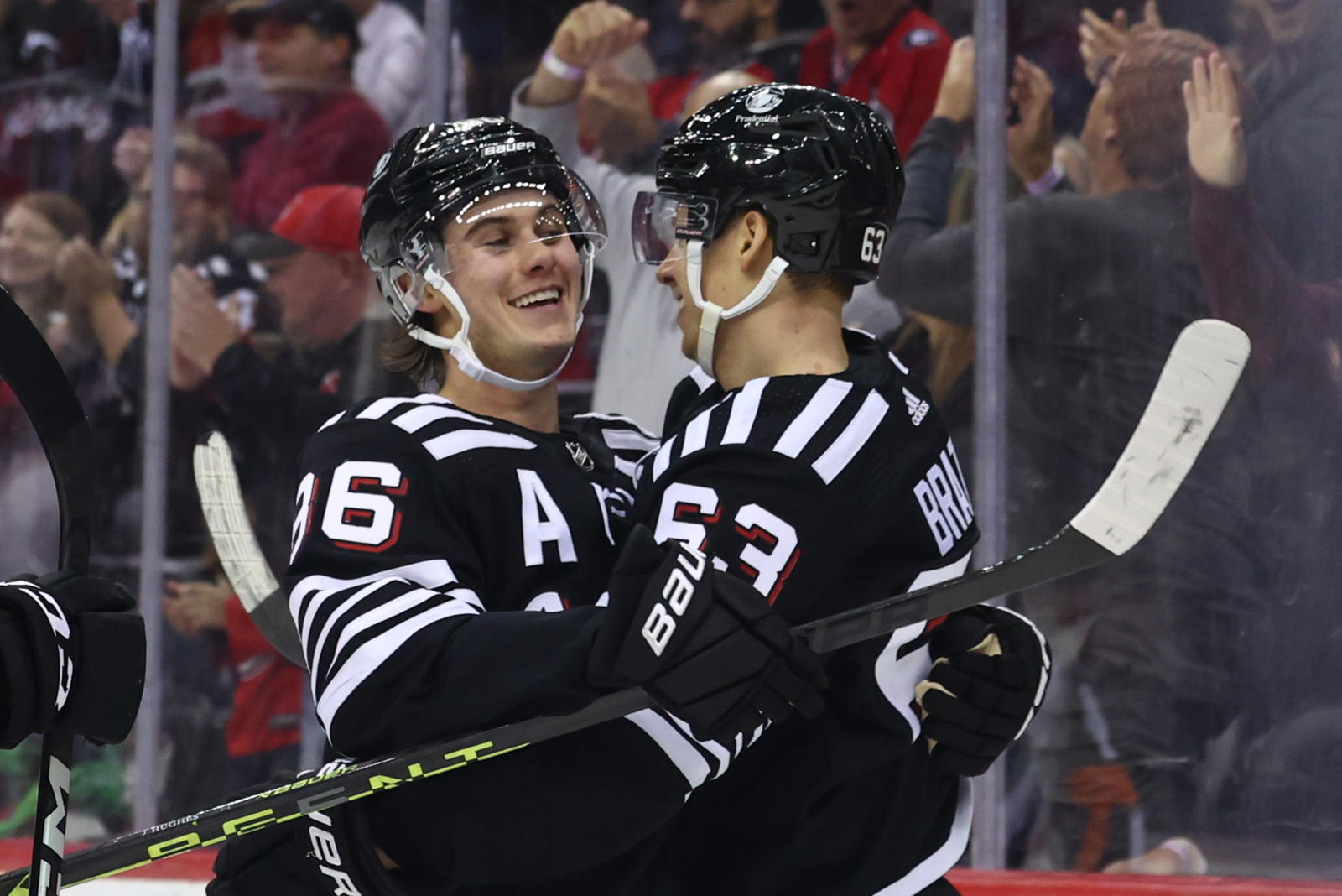 Devils stars Jesper Bratt and Jack Hughes each made franchise history in the club's blowout win, too.