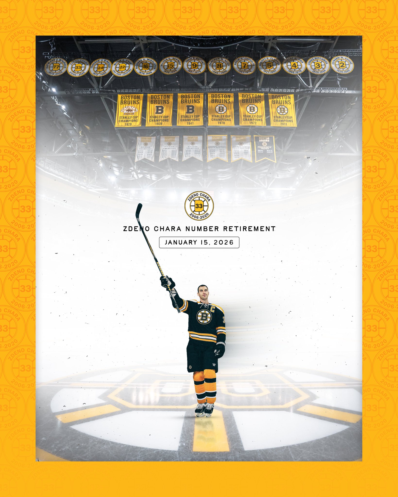 On Monday, the Boston Bruins announced that Zdeno Chara's No. 33 will take its rightful place in the T.D. Garden Rafters on Jan. 15.