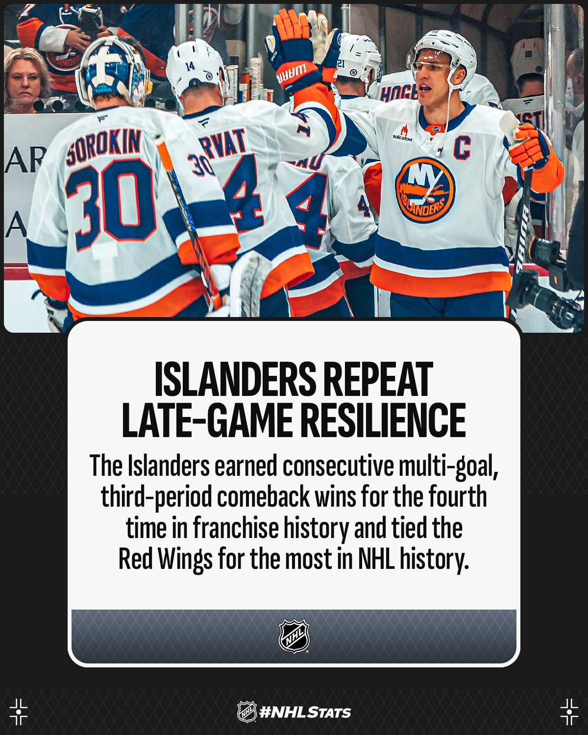 The Islanders have four multi-goal comebacks in the third period this season, but the prior two were not back-to-back. Among multi-goal comebacks include a 4-3 shootout win over the Penguins in November and a 3-2 overtime win over the Carolina Hurricanes in January.