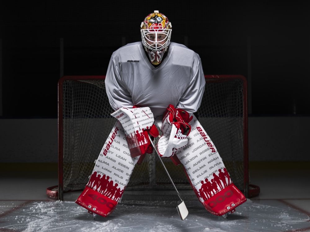 Linus Ullmark is lending a hand to assist families of children with cancer. He's helped to design a set of pads, a glove and a blocker with the names of children who have been touched by cancer. The gear is available in an upcoming auction fundraiser.