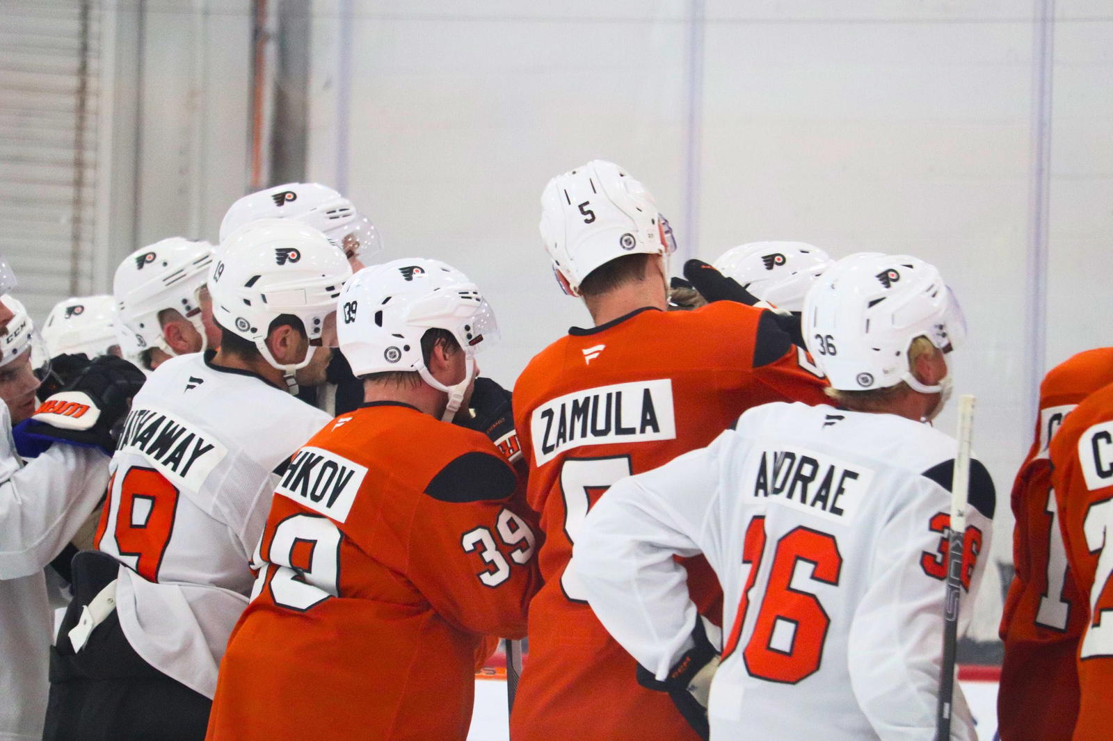 If you watch warmups closely, you’ll notice it: Michkov and Andrae, in their own little world, going through a routine that’s become as much a part of their game-day ritual as taping sticks or stretching. They'll shoot pucks at each other, intetionally bash shoulders, and sneak in the occasional stick tap on each other's helmets.
