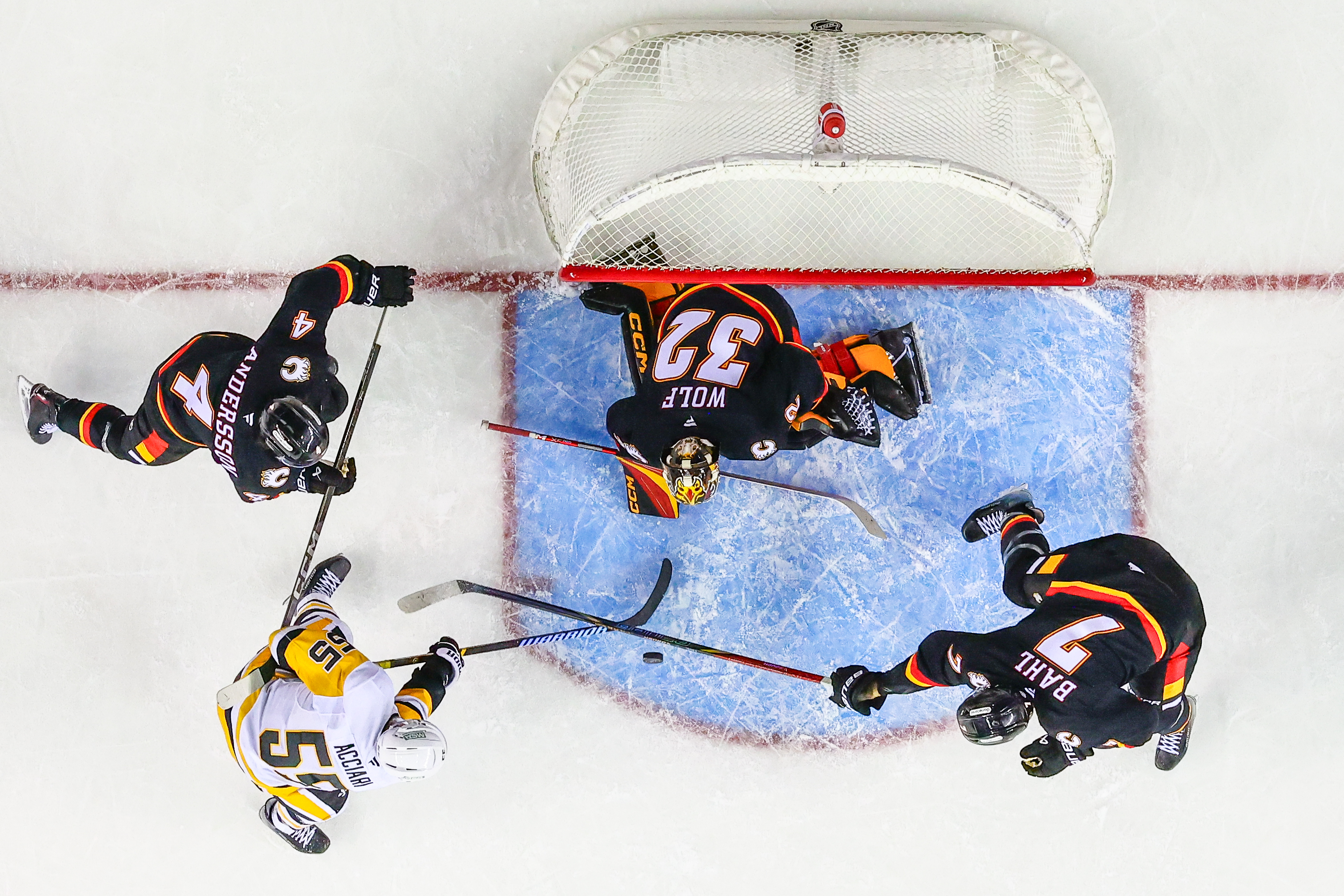 Yes, Pittsburgh applied plenty of pressure on the youngster Wolf and made him work for his shootout victory tonight. But the Penguins came out flat again and looked lifeless to start the contest, allowing the Flames to dance around the offensive zone.
