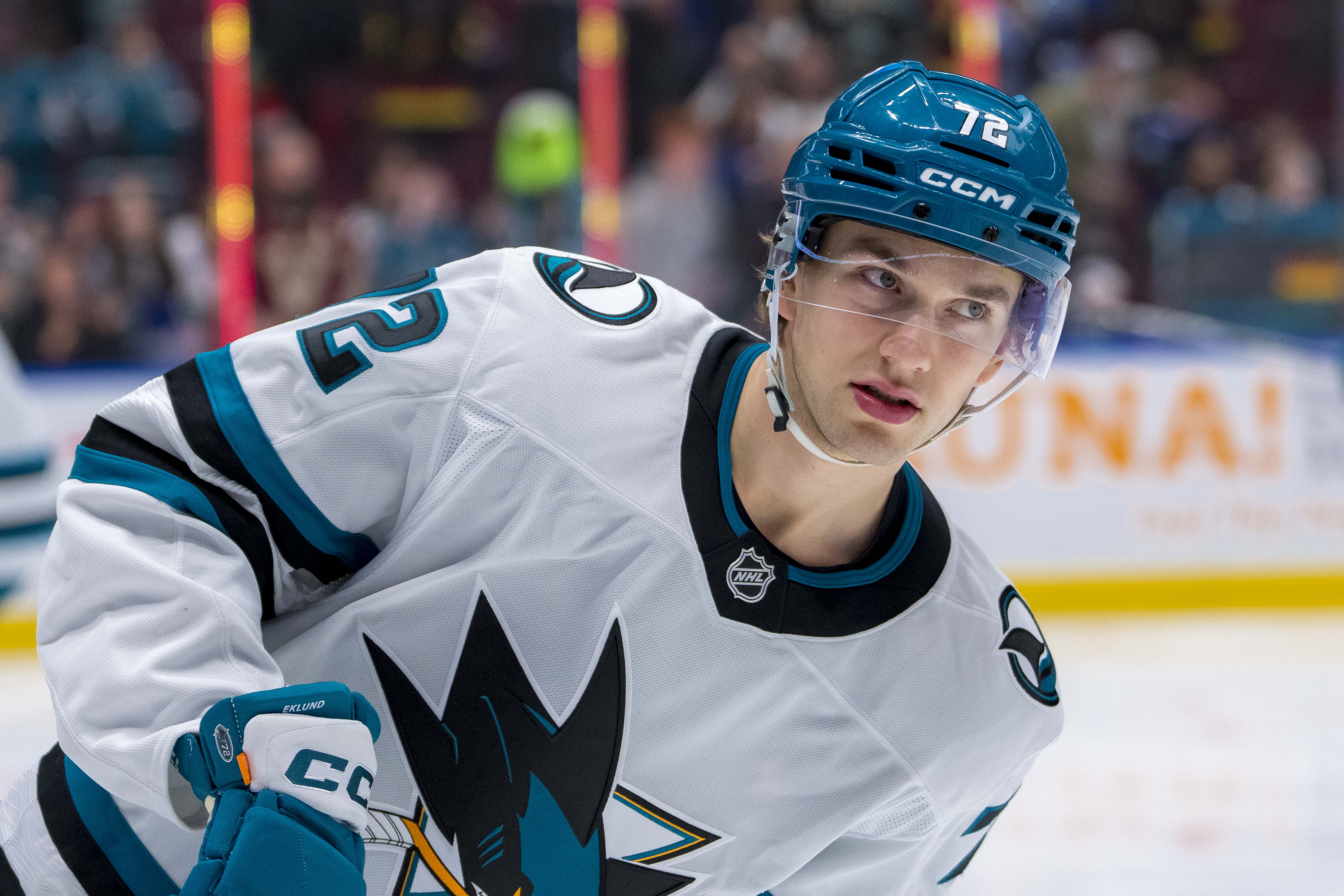 Per the team, Eklund hasn't been officially ruled out of the game and is deemed questionable to return. Eklund scored the Sharks first goal on the power play but was hit hard by Canucks defenseman Tyler Myers shortly before.