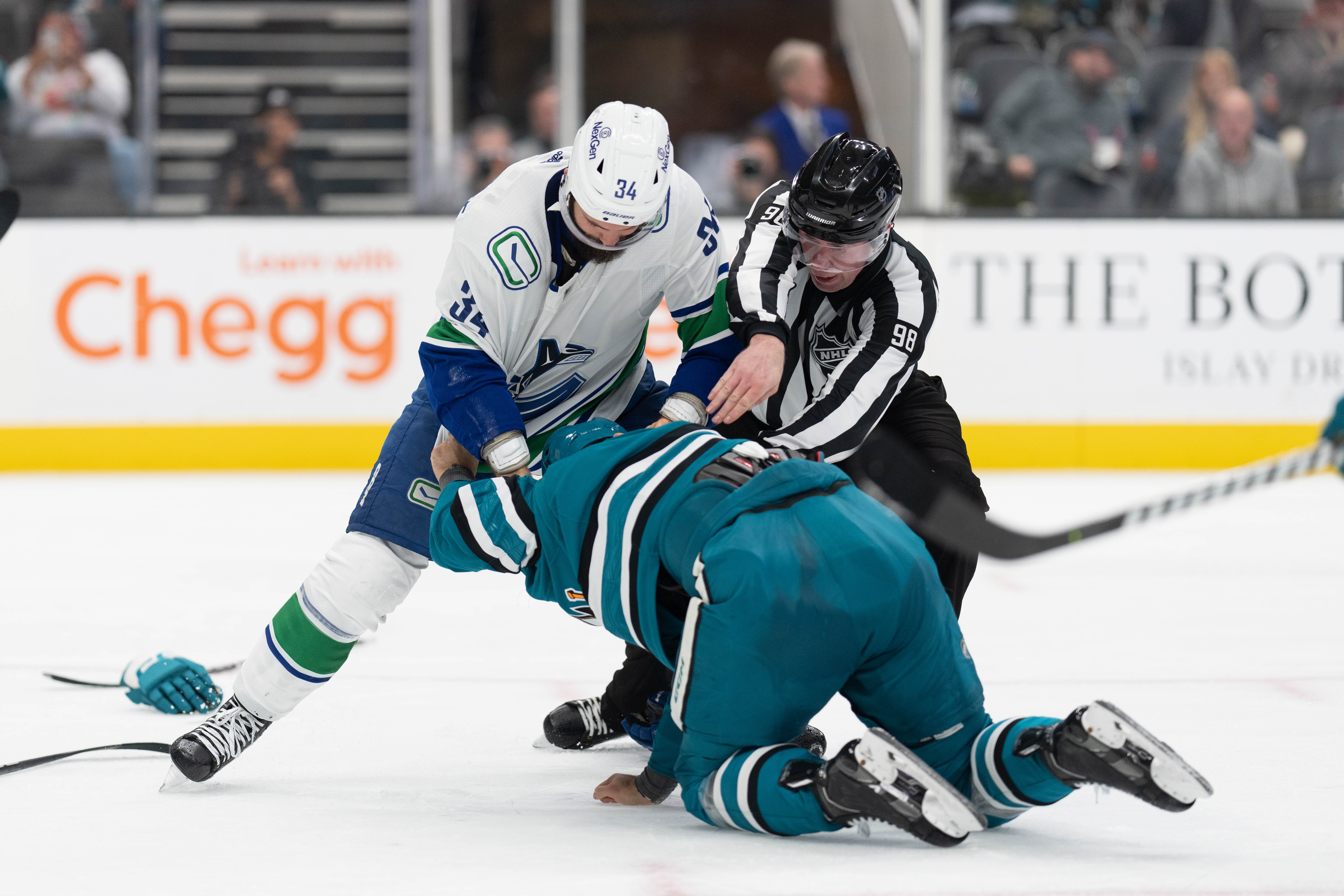 The San Jose Sharks are hosting the Vancouver Canucks exactly one year after the Canucks defeated the Sharks 10-1.