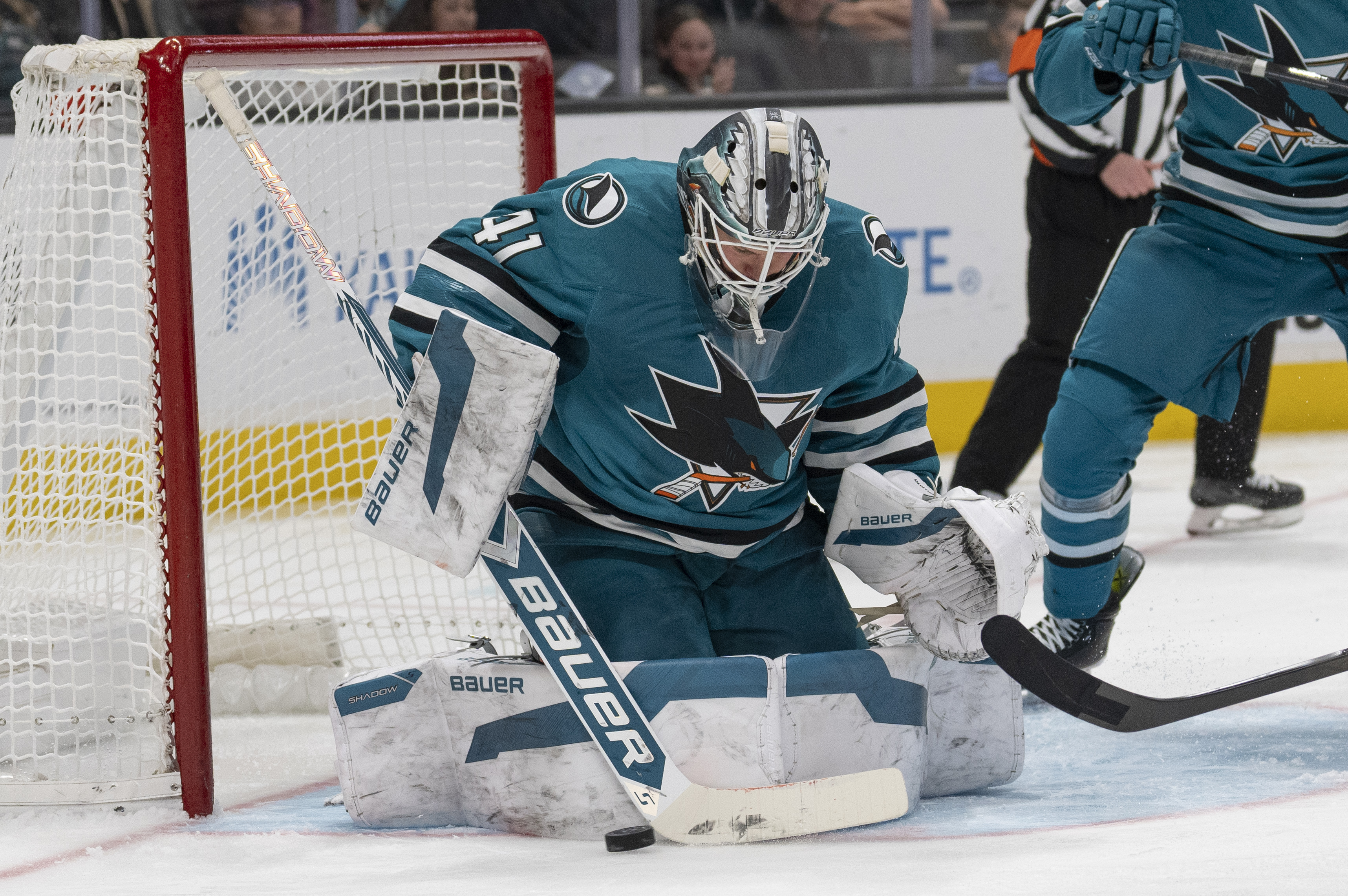 San Jose started Alexandar Georgiev in goal, but the emergency backup goalie will be forced to enter the game if he gets hurt.