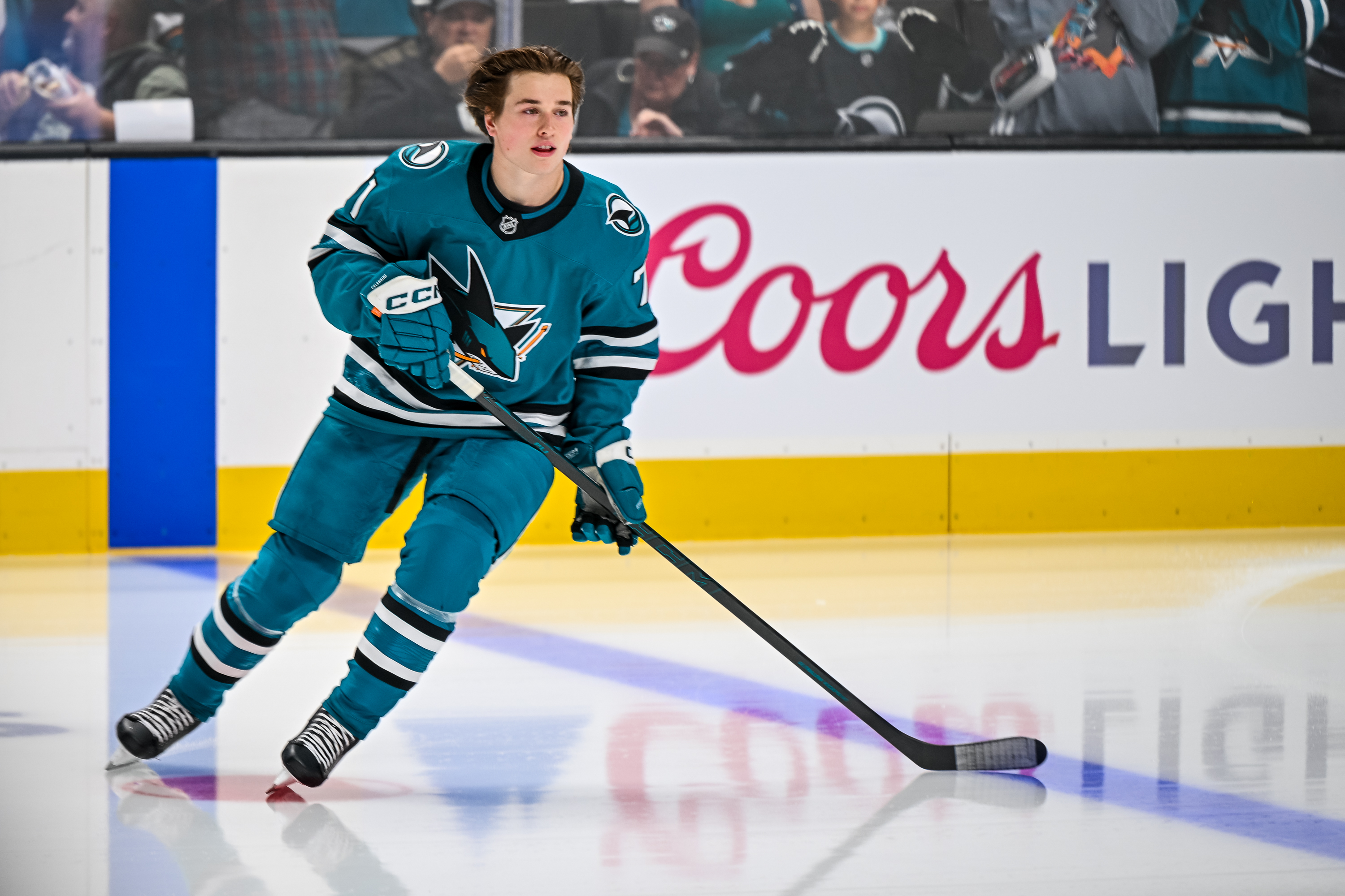 Both players came out helmetless, as it became a new tradition across the NHL to have the rookies start warmups without a helmet. Celebrini and Smith had spent a lot of time together leading up to tonight, and their friendship off the ice dripped onto their rookie laps with passes to each other.