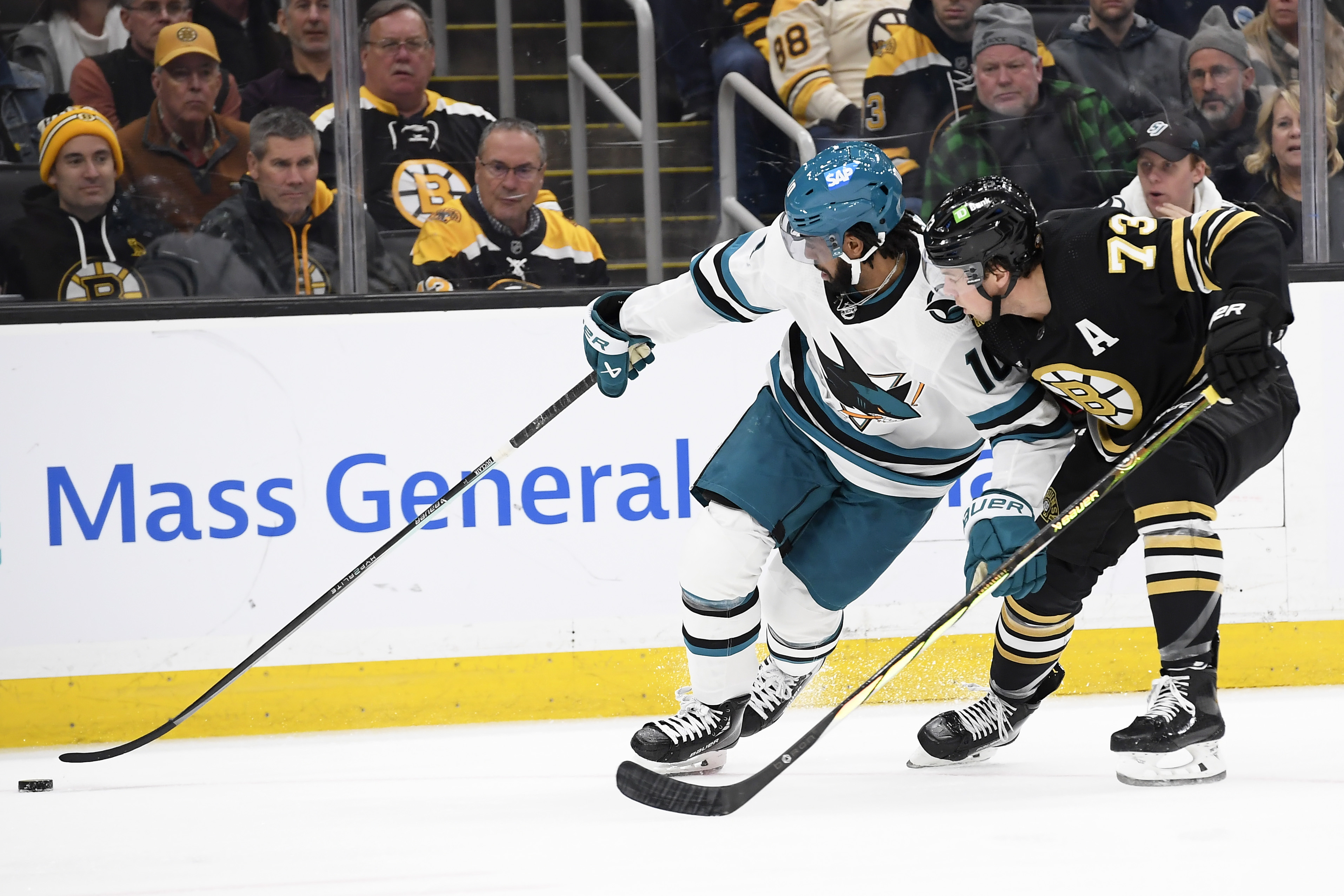 The San Jose Sharks lost 3-0 to the Boston Bruins on Thursday night.