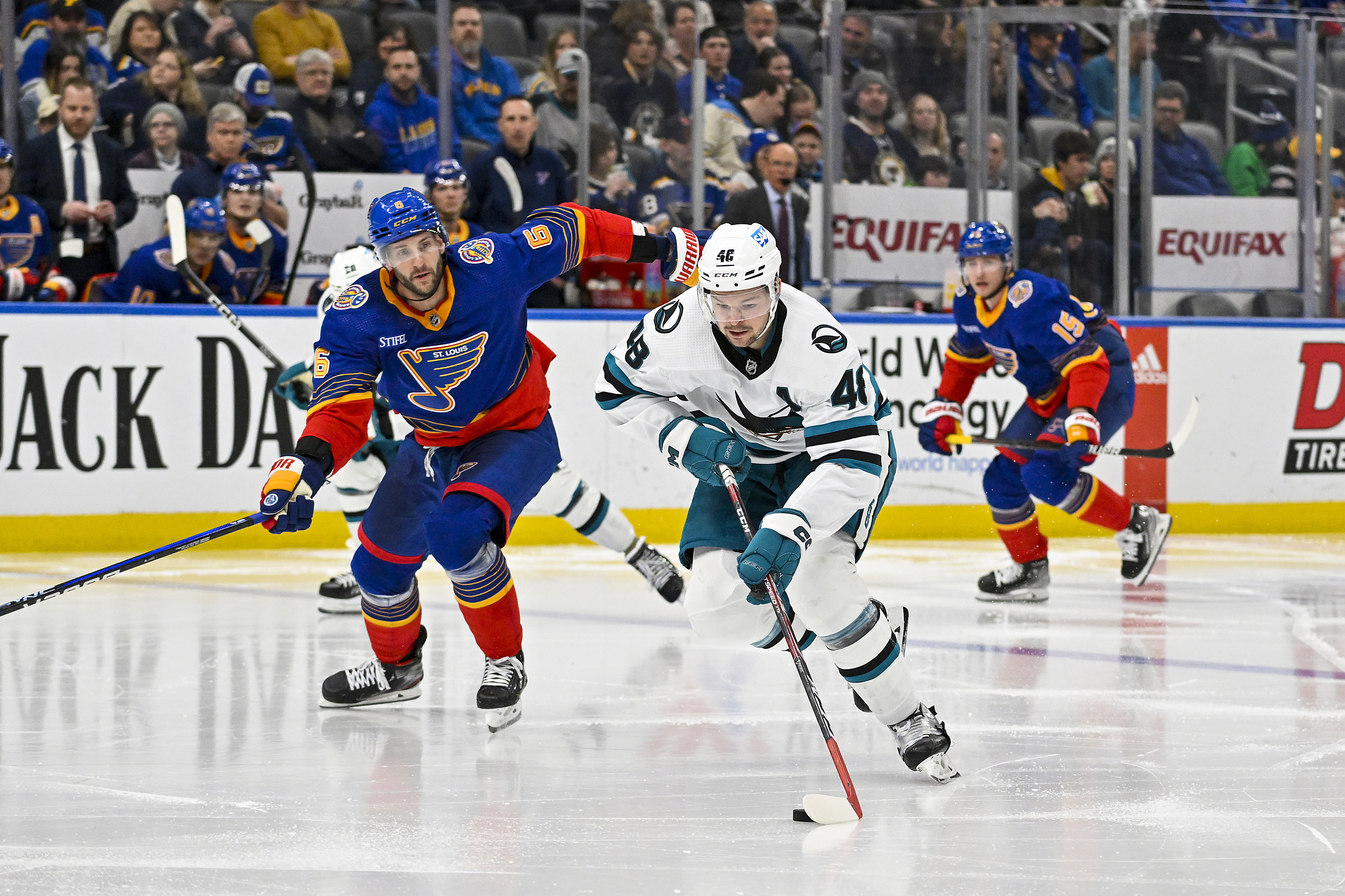 The San Jose Sharks host the St. Louis Blues for the first time this season.