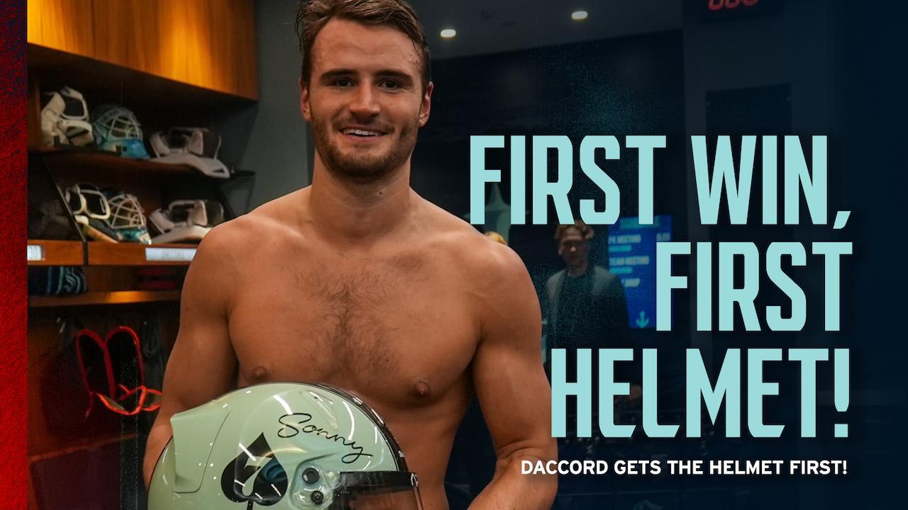 Goaltender Joey Daccord was the first to receive the helmet following Seattle's 3-1 win against the Ducks on Thursday.